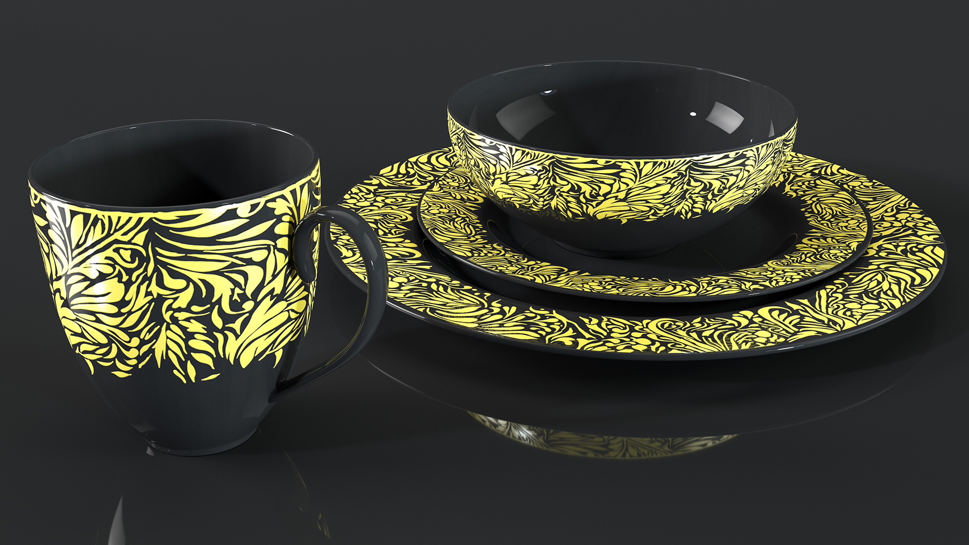 Black and Gold Dinnerware Set is a high quality, photo real 3d model that will enhance detail and realism to any of your rendering projects. The model has a fully textured, detailed design that allows for close-up renders, and was originally modeled in 3ds Max 2020 and rendered with V-Ray. Renders have no postprocessing!