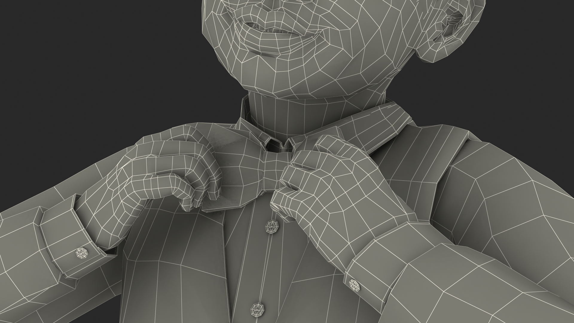 Black Child Boy Party Style is a three-dimensional model of a brave Aframerican kid boy with vest, bow tie, shirt, trousers and shoes.