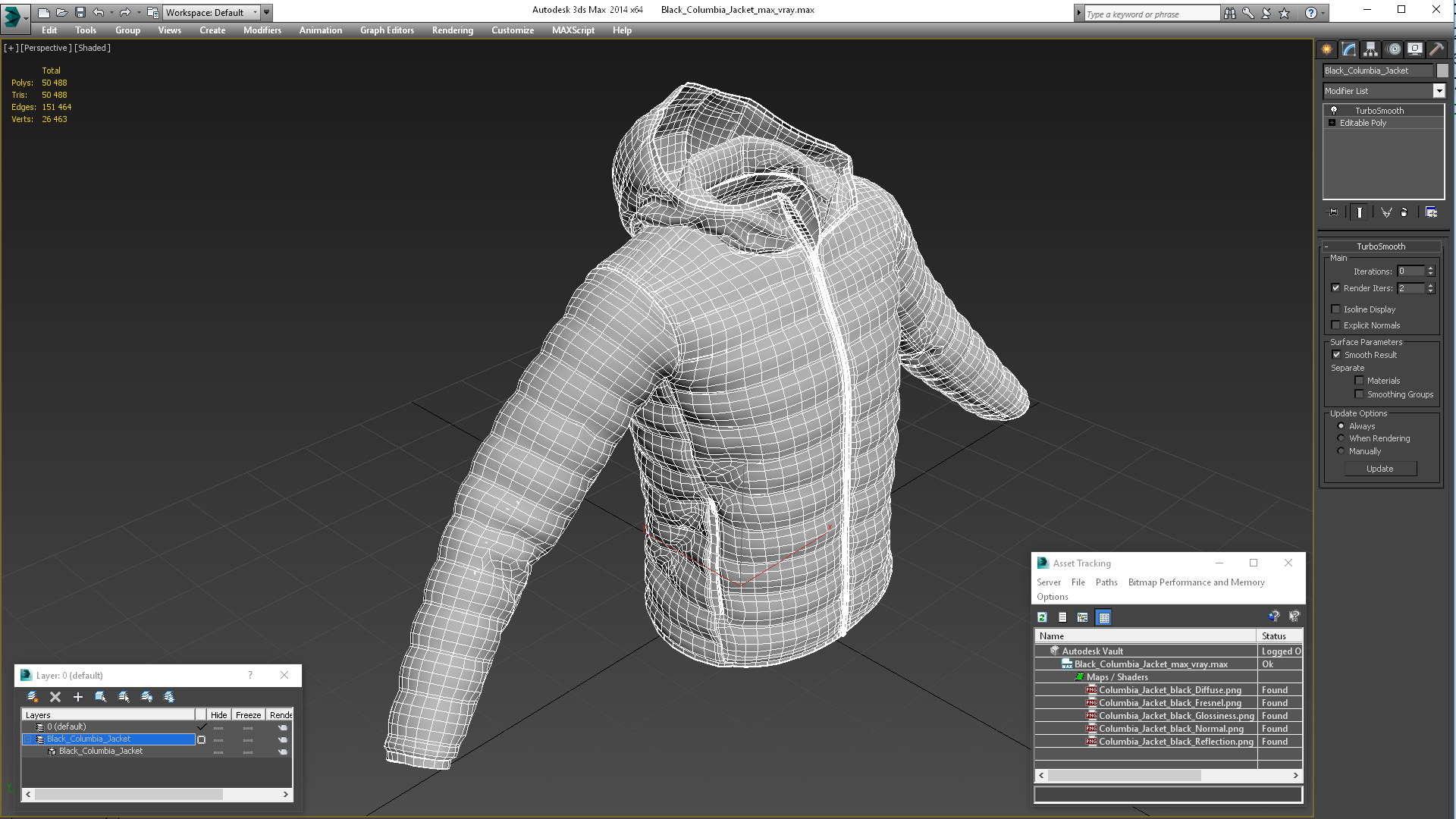 Black Columbia Jacket is a high quality, photo real 3d model that will enhance detail and realism to any of your rendering projects. The model has a fully textured, detailed design that allows for close-up renders, and was originally modeled in 3ds Max 2020 and rendered with V-Ray. Renders have no postprocessing!