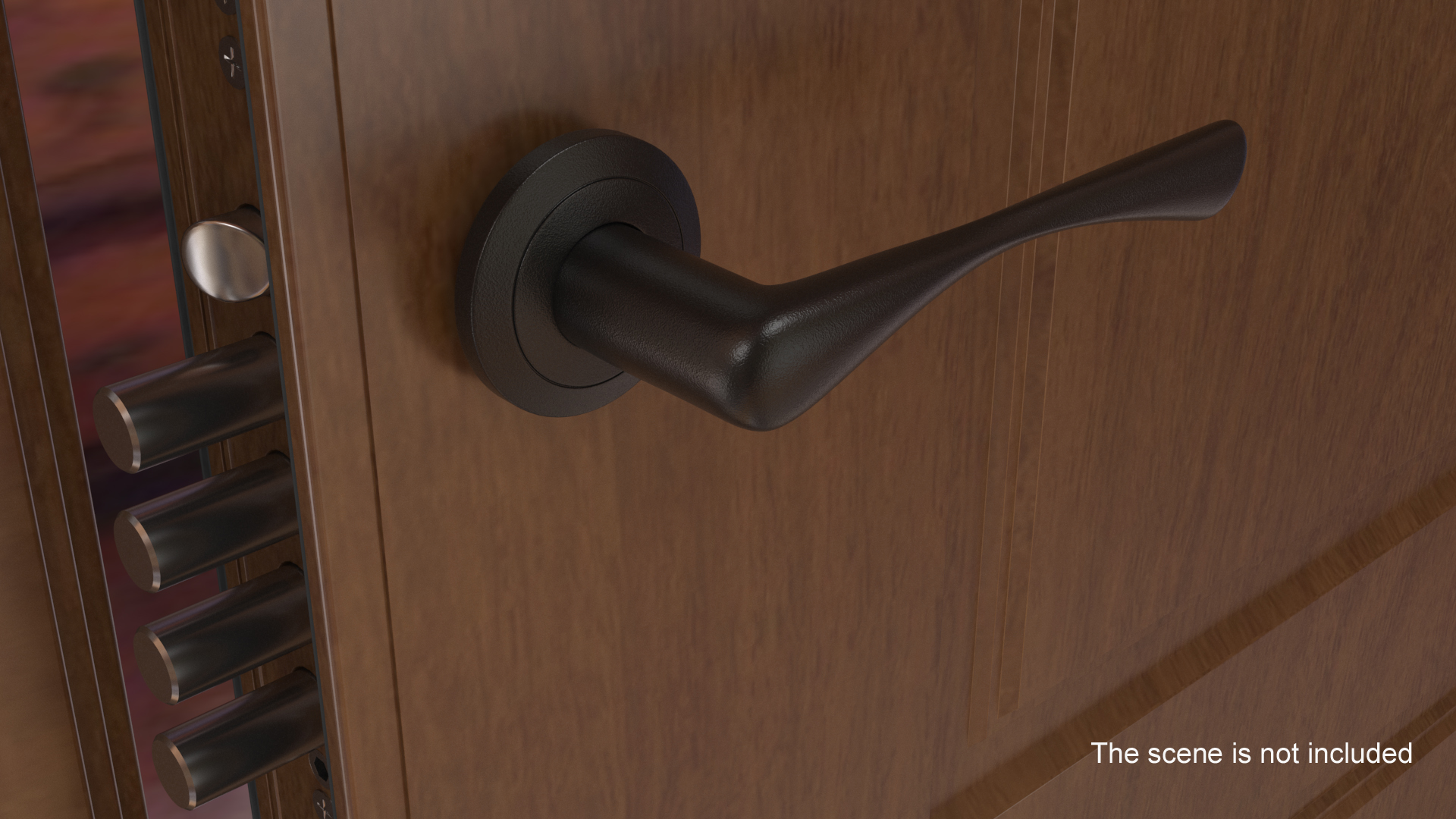 Black Door Handles Separate is a three-dimensional model of traditional door hardware (metal door furniture or accessory) which is an angled lever type grip (simple mechanical arm), and which is a popular device attached to a room door to enhance its functionality.