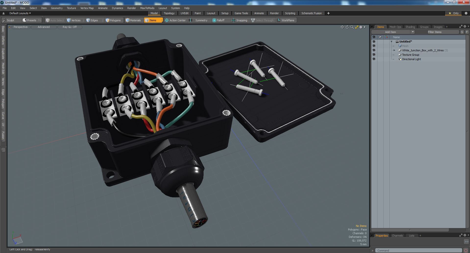 Black Junction Box with 2 Wires is a three-dimensional model of a well known accessory for electrical wiring works.