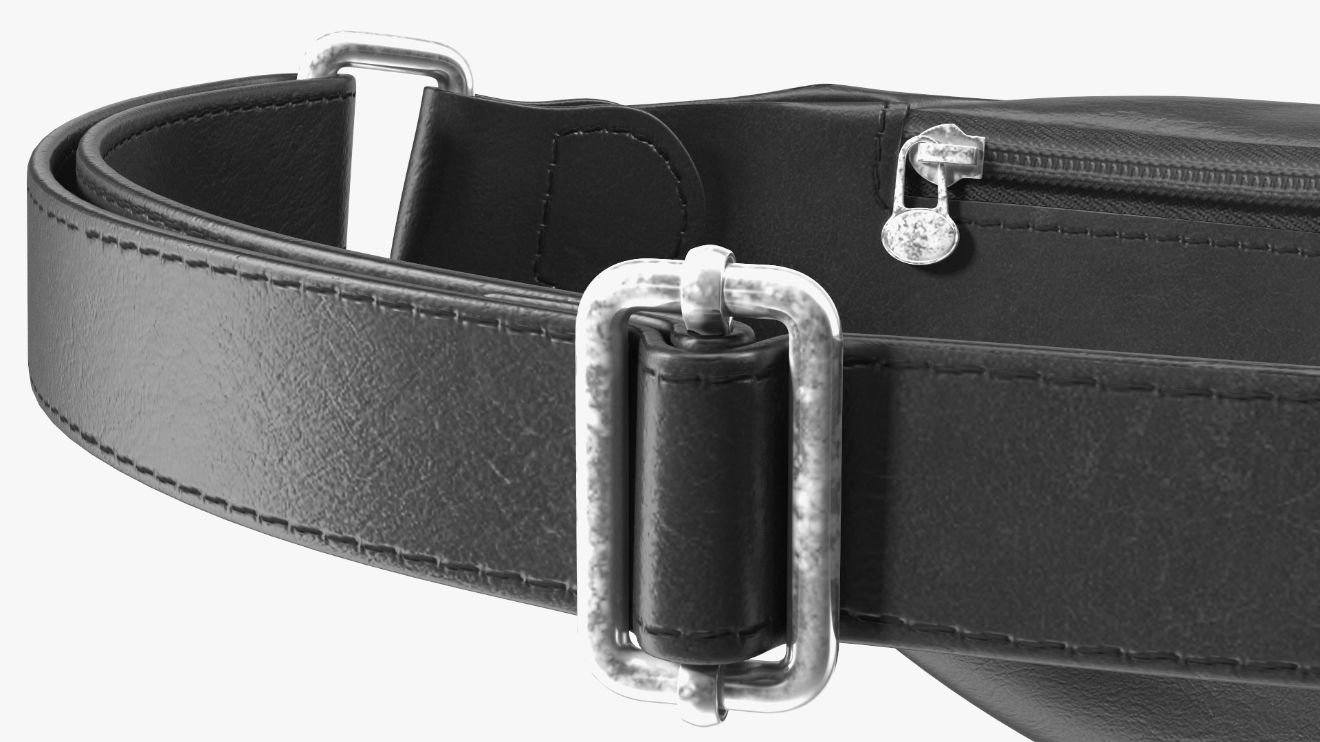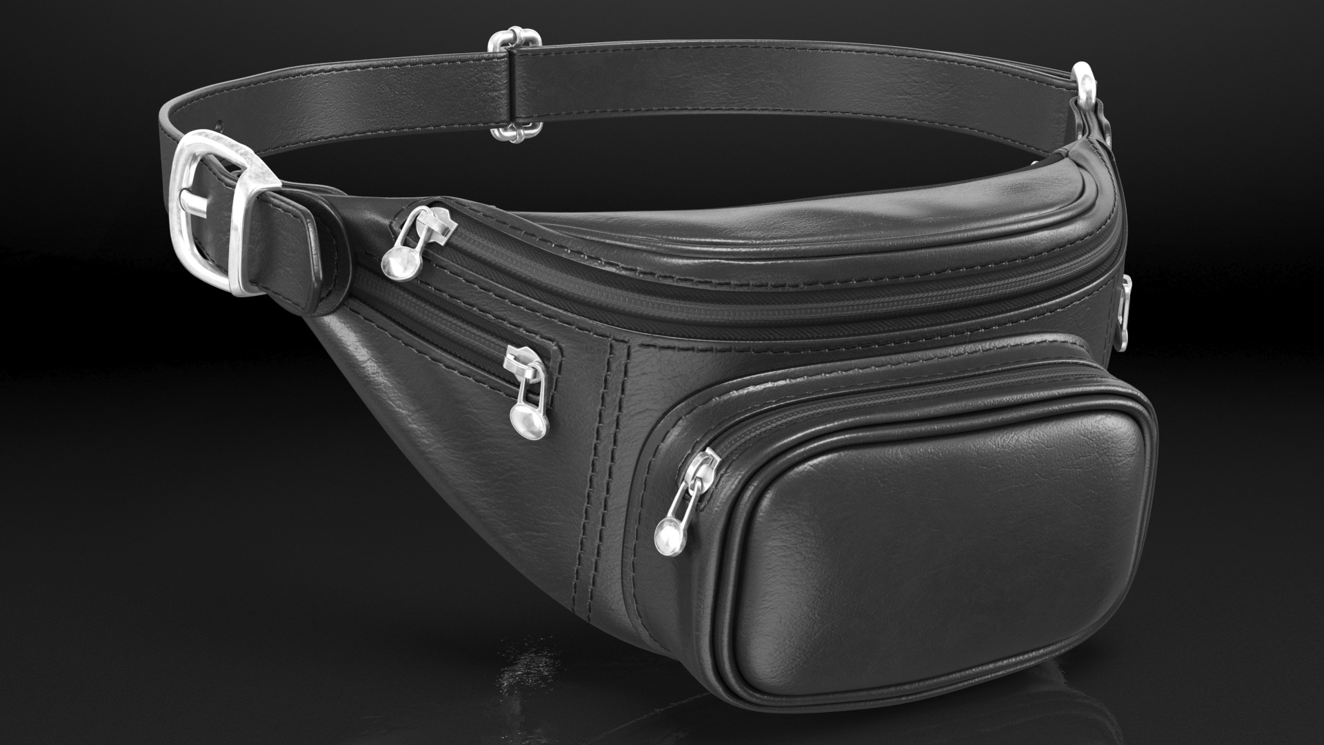 Black Leather Waist Bag is a three-dimensional model of a zipped small pouch worn like a lightweight money carrier belt around the waist.