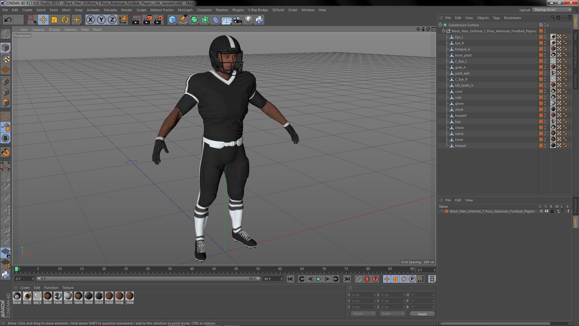 Black Man Uniform T-Pose American Football Players is a 3D model of strong U.S. athlete, who is a brave athletic person or sportsman.