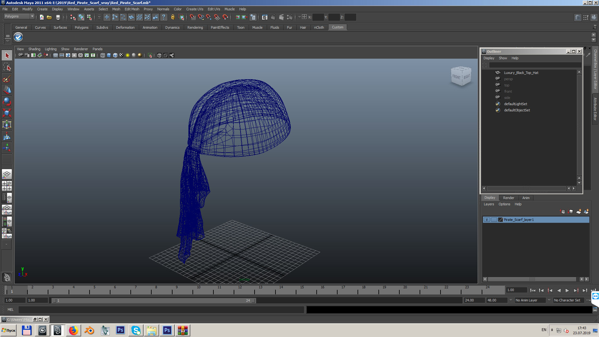 Black Pirate Scarf is a high quality, photo real 3d model that will enhance detail and realism to any of your rendering projects. The model has a fully textured, detailed design that allows for close-up renders, and was originally modeled in 3ds Max 2020 and rendered with V-Ray. Renders have no postprocessing!