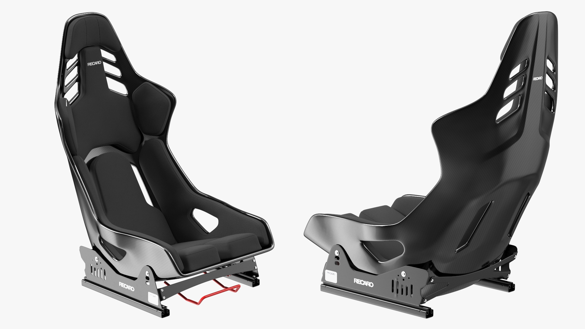 Black RECARO Podium CF Racing Seat on Sliding Mount is a three-dimensional model of racing seat which is a high-performance racing seat which is designed for motorsport enthusiasts and professionals.