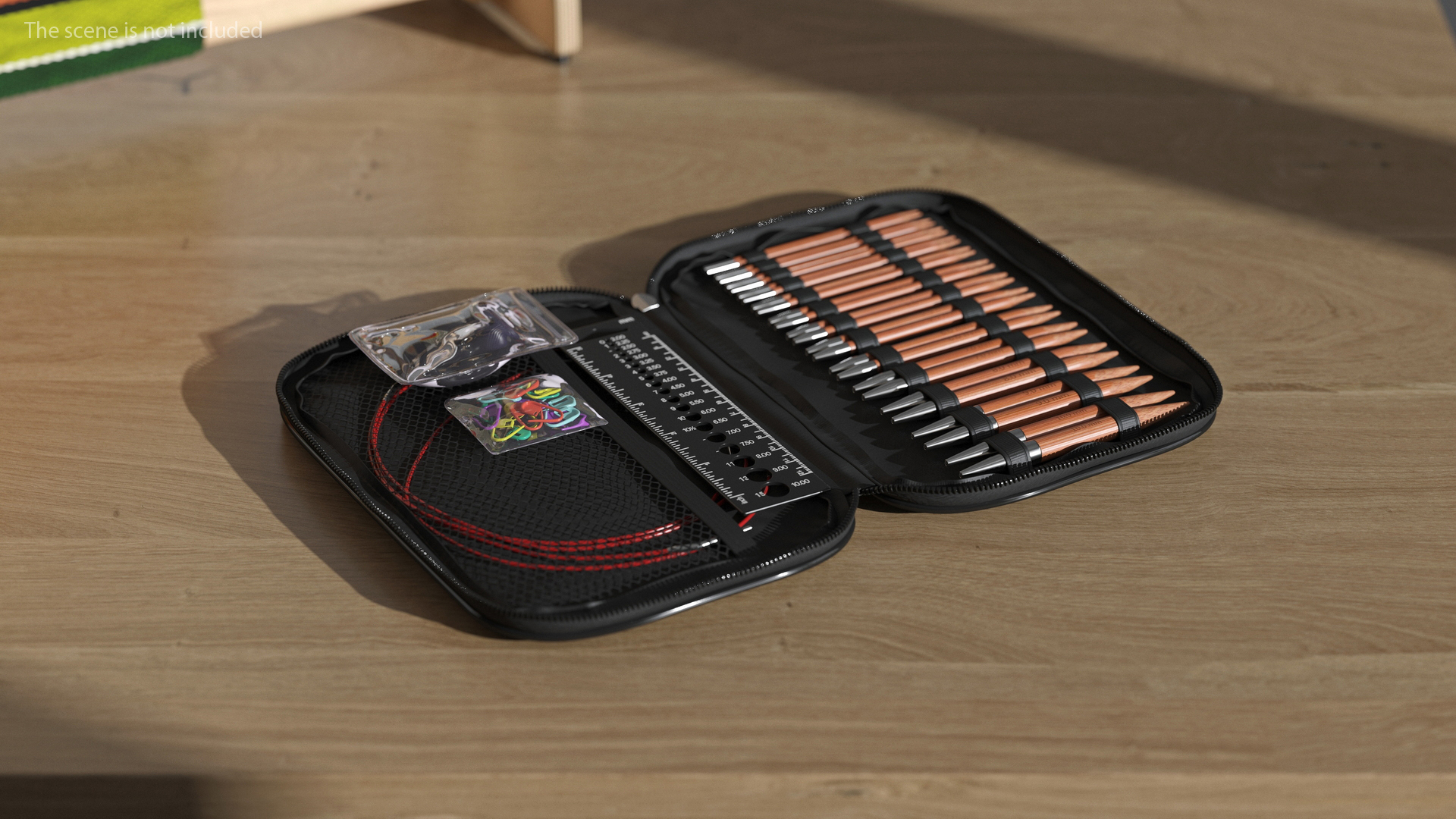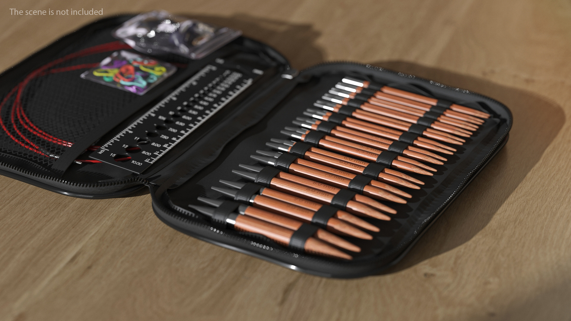 Black Sewing and Knitting Kit is a 3D model of sewing and knitting set or collection which includes various tools and materials needed for knitting projects.