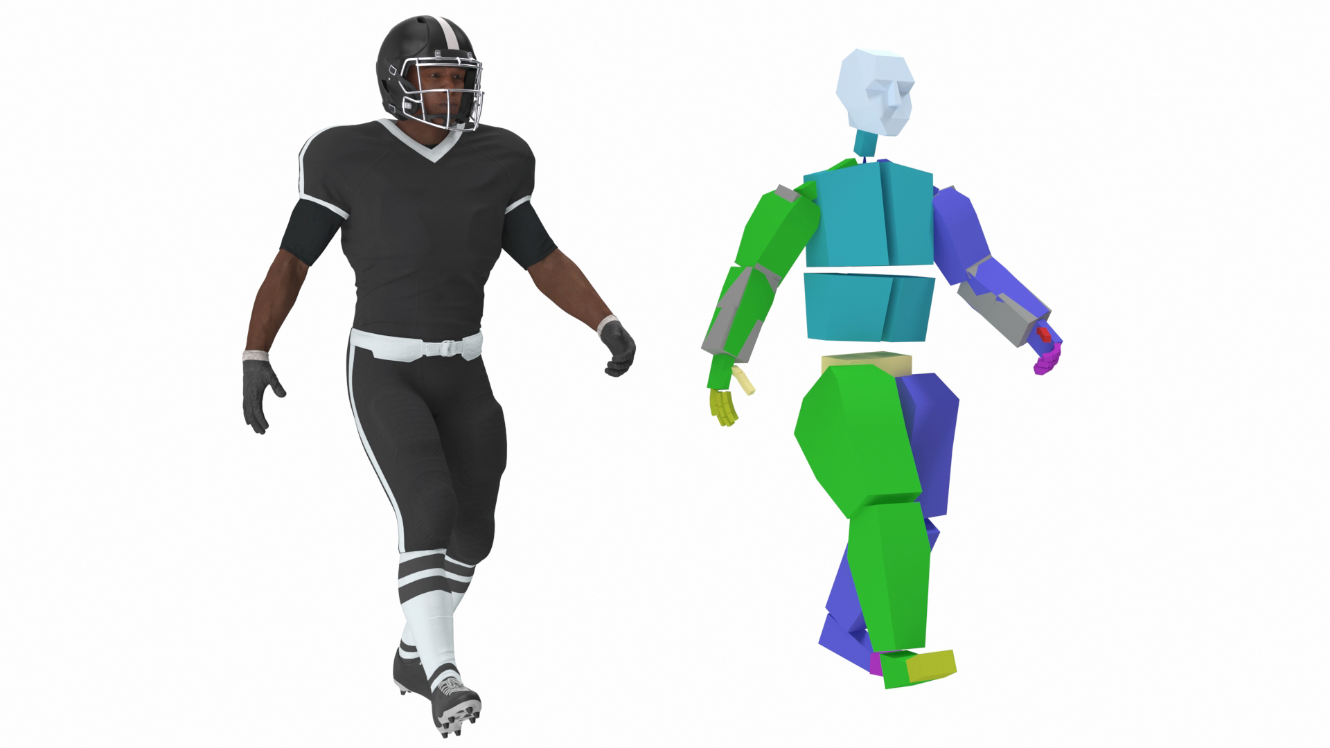 Black Uniform Black Man Football Player Rigged is a 3D model of brave and daring Afro-American athlete, athletic person or football sportsman.