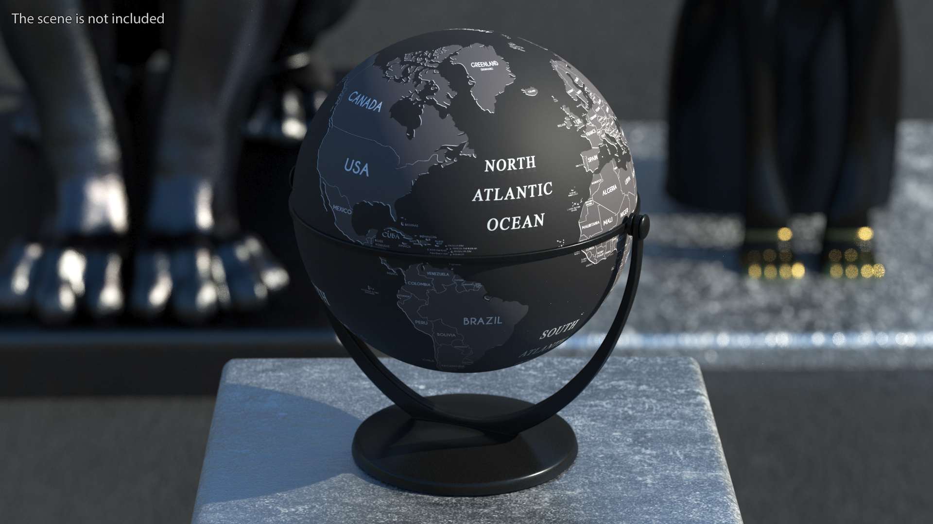 Black World Globe with Stand is a high quality, photo real 3d model that will enhance detail and realism to any of your rendering projects. The model has a fully textured, detailed design that allows for close-up renders, and was originally modeled in 3ds Max 2020 and rendered with V-Ray. Renders have no postprocessing!