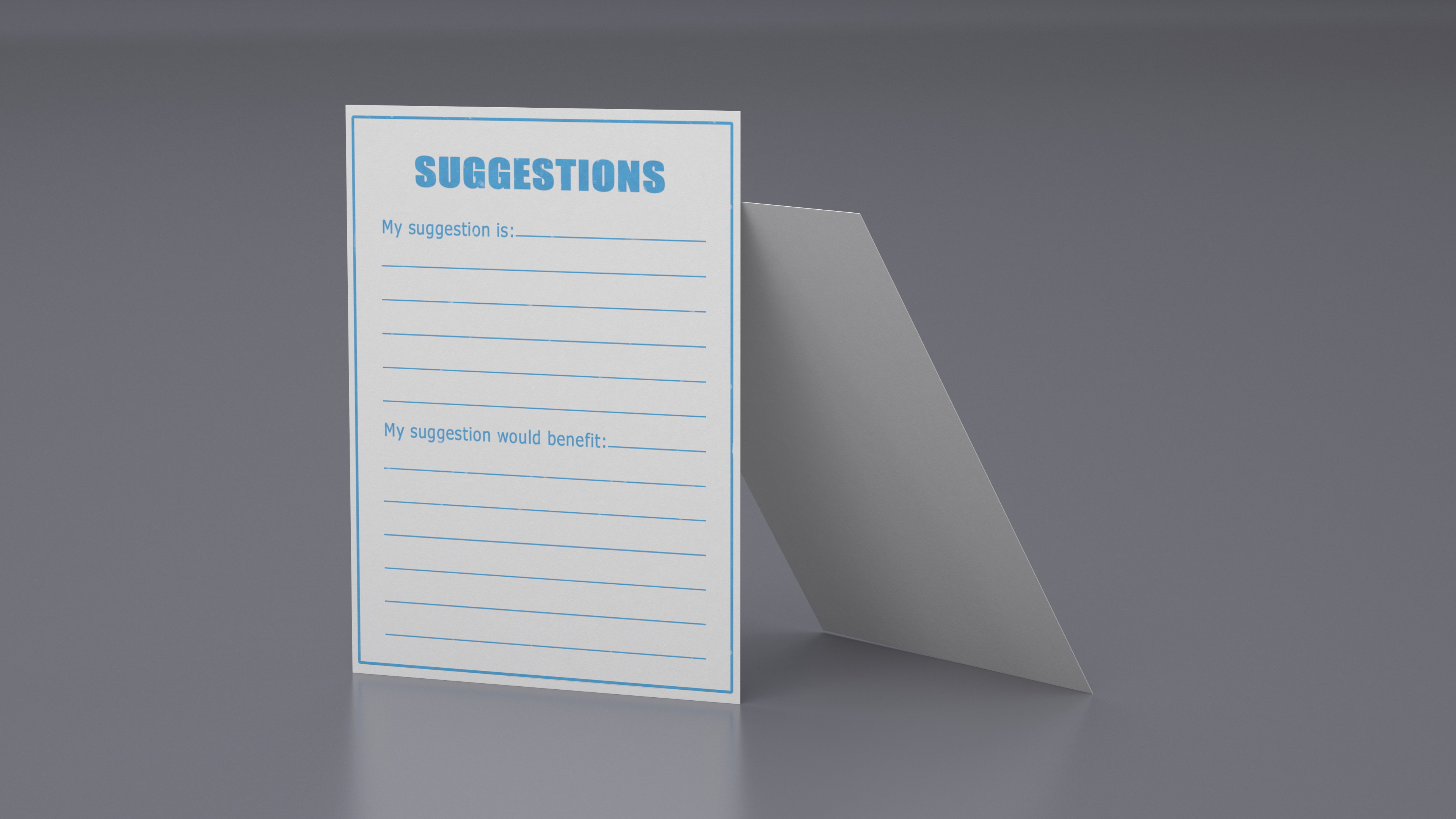 Blank Suggestions Form Light Blue is a three-dimensional model of paper suggestion card, which is a template type form used for paper suggestion cards gather in ballot comment type boxes.