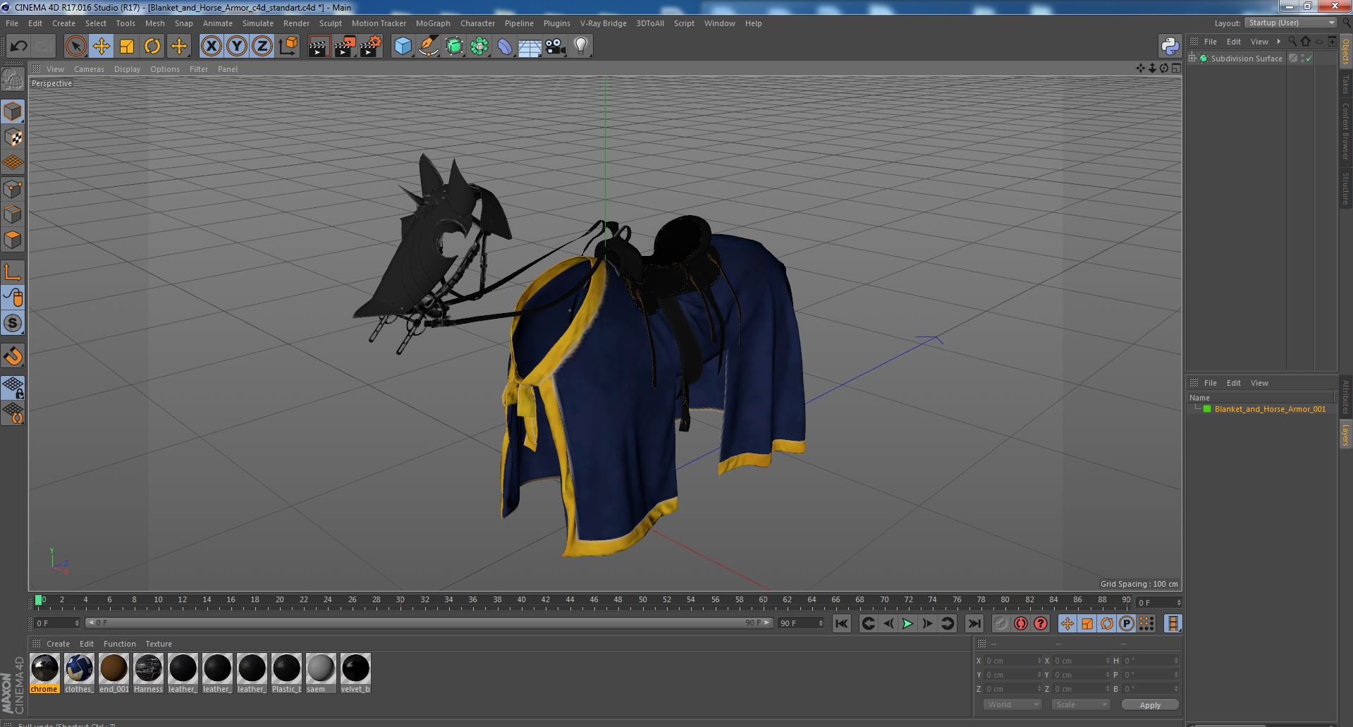 Blanket and Horse Armor is a high quality, photo real 3d model that will enhance detail and realism to any of your rendering projects. The model has a fully textured, detailed design that allows for close-up renders, and was originally modeled in 3ds Max 2020 and rendered with V-Ray. Renders have no postprocessing!