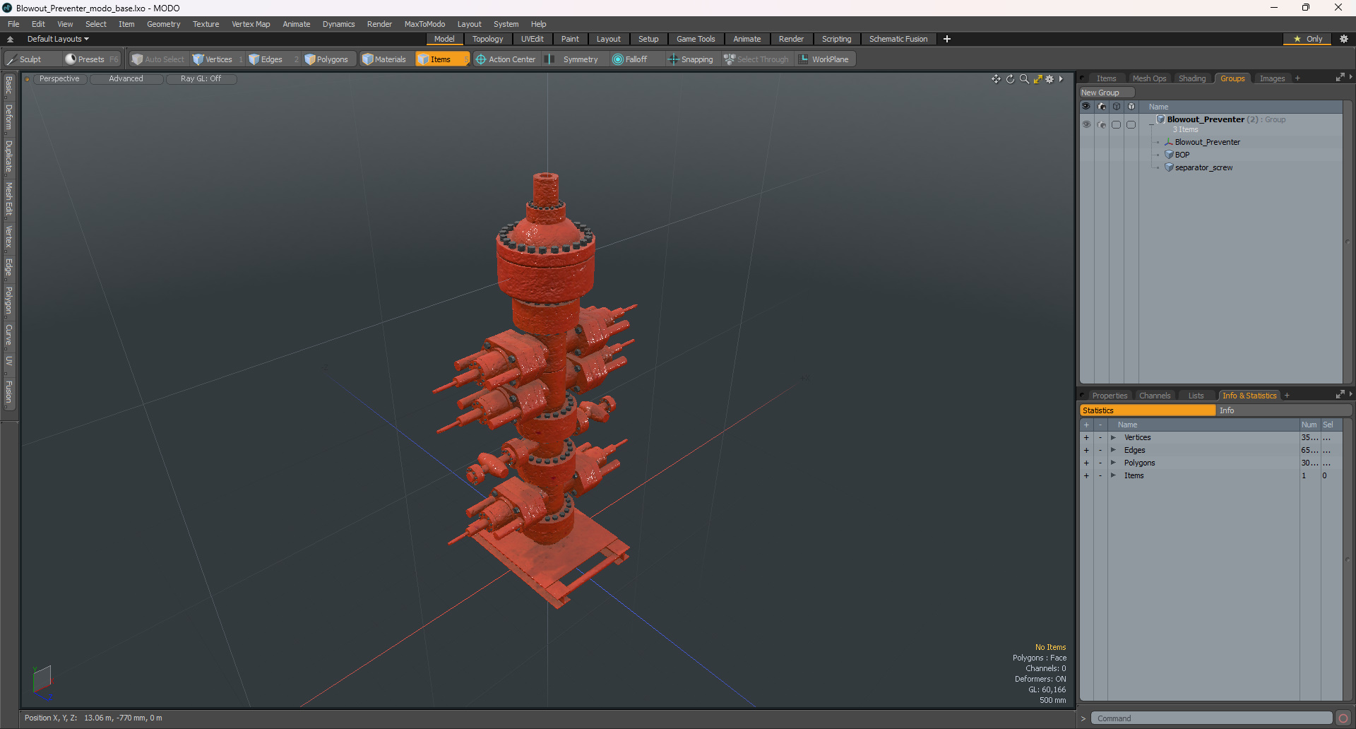 Blowout Preventer is a 3d model of a critical safety device used in oil and gas drilling operations, designed to seal, control, and monitor oil and gas wells to prevent blowouts.