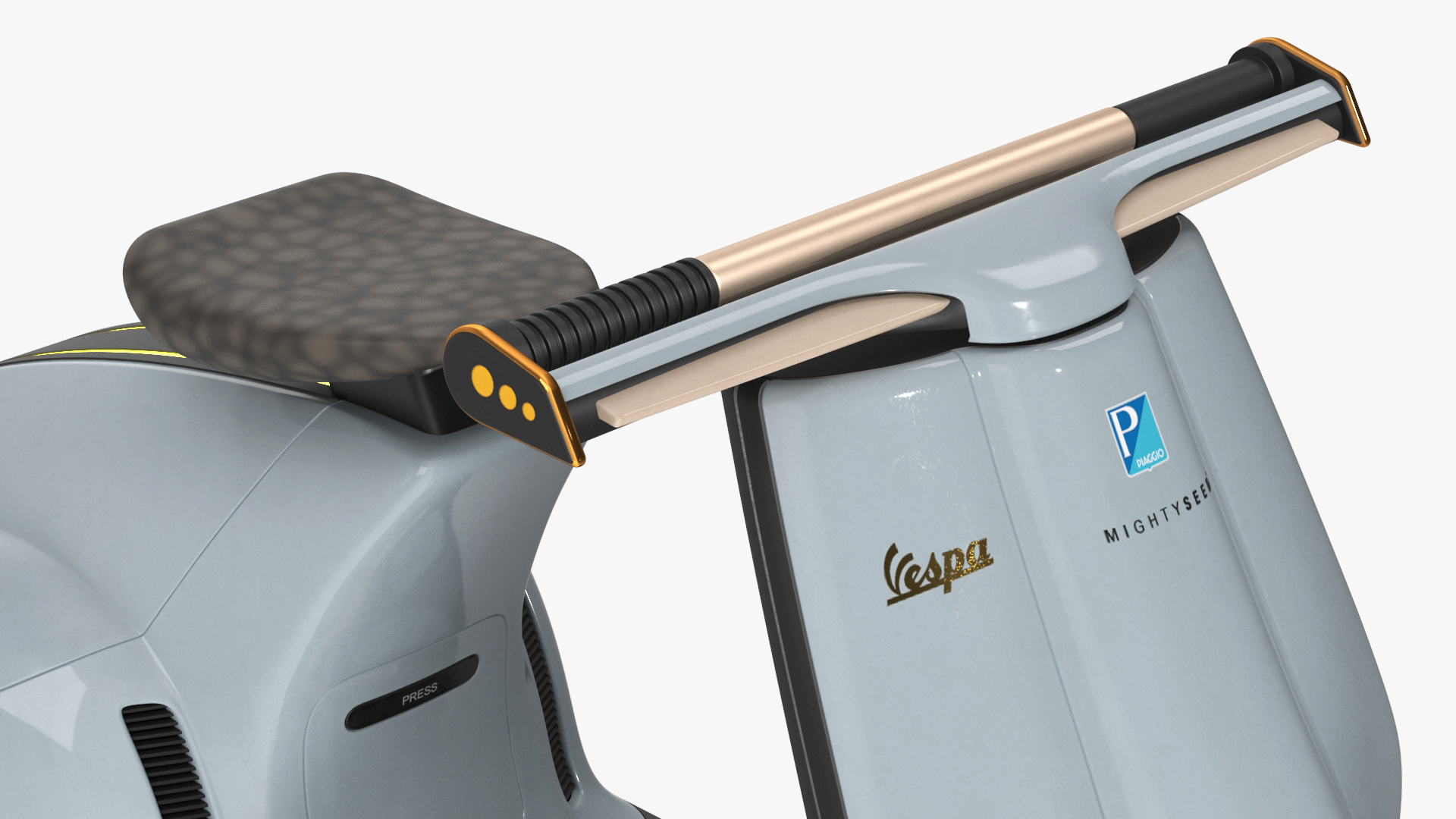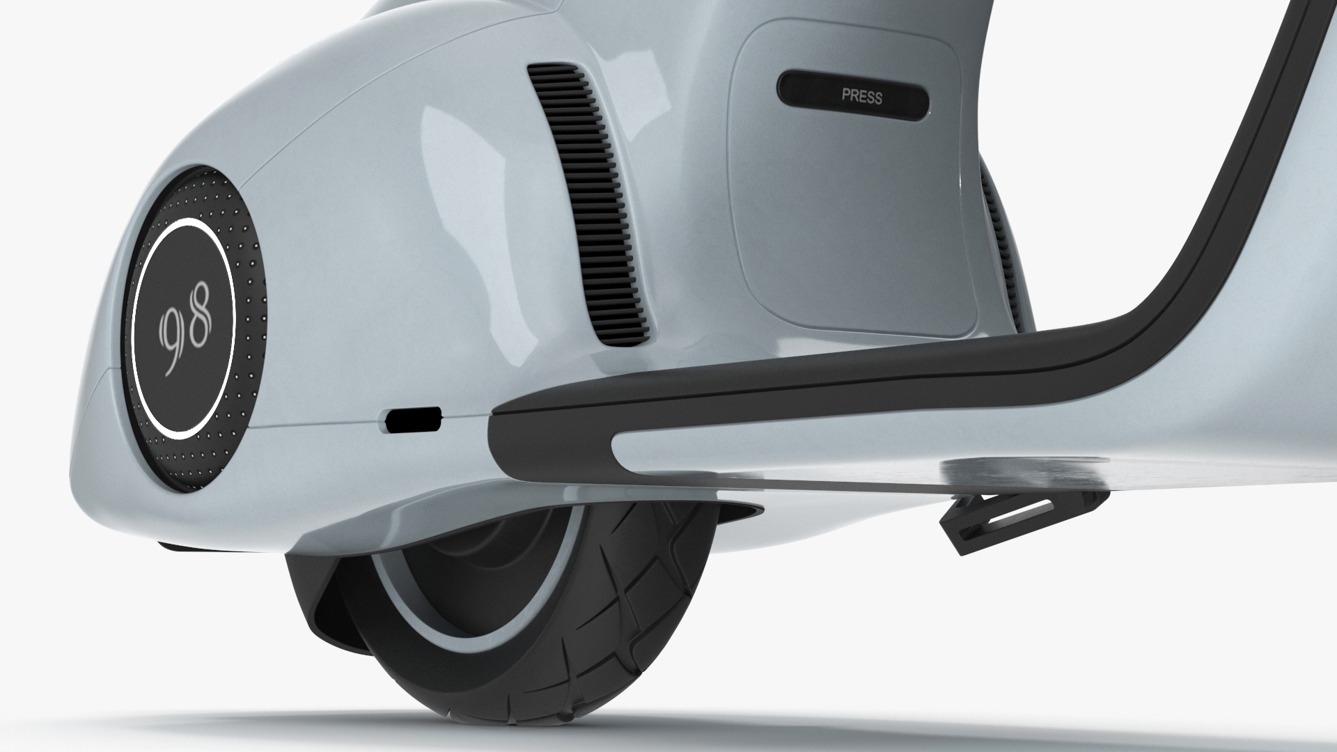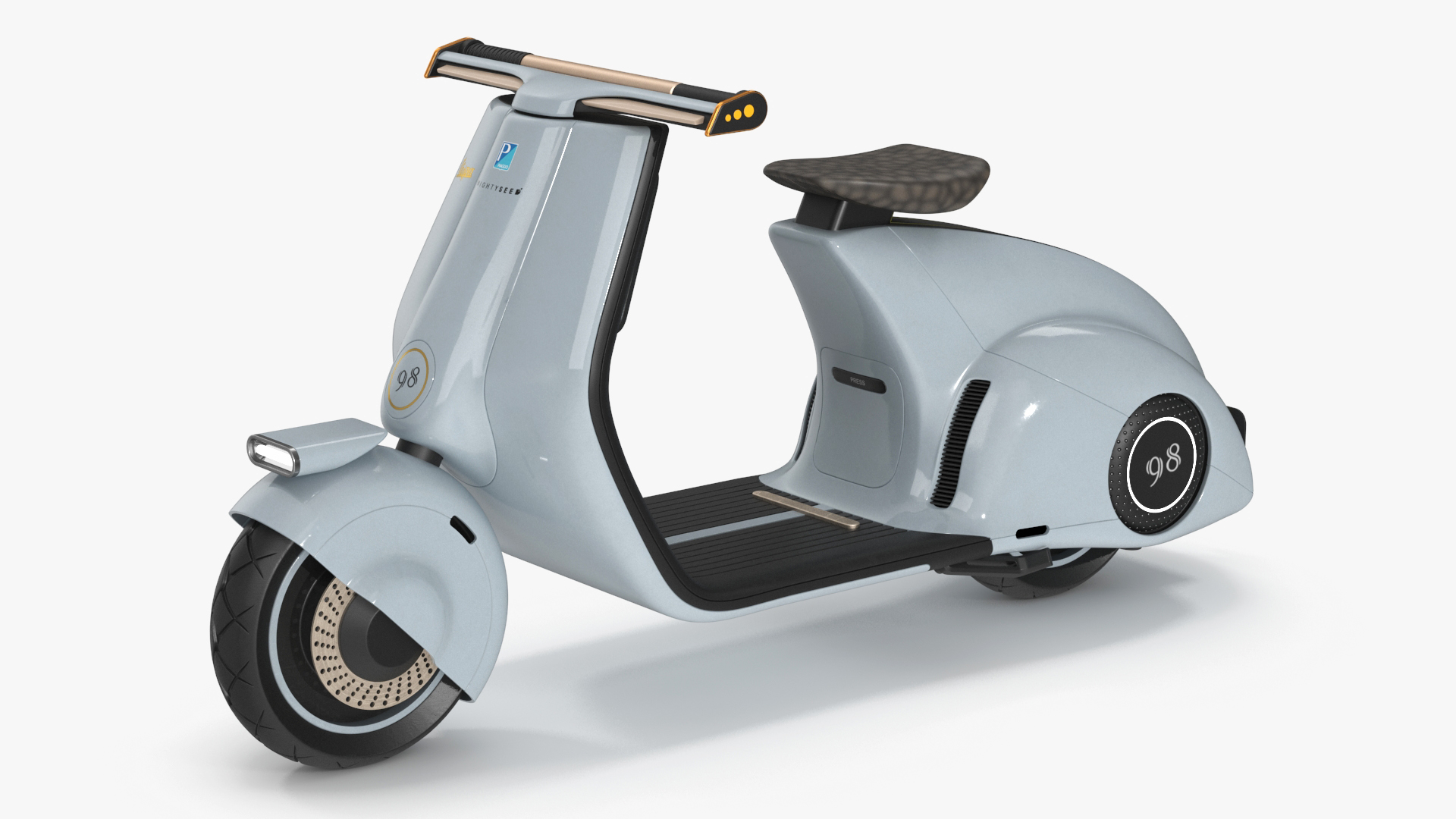 Blue Concept Electric Scooter Vespa 98 Lights On is a three-dimensional model of electric scooter which is a modern smart moped-style electric bike (compact e-bike vehicle), which blends vintage aesthetics with cutting-edge technology to offer riders a unique urban commuting experience.