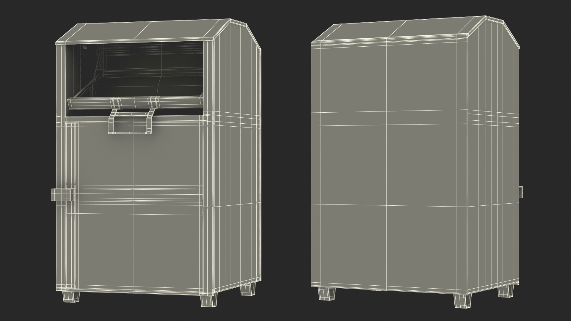 Blue Drop Box Rigged is a 3D model of donated shoes and clothes container (bin type device) which is the storage facility (equipment) with discernible reception window, and which designed to recycle shoes, clothes, and other textiles.