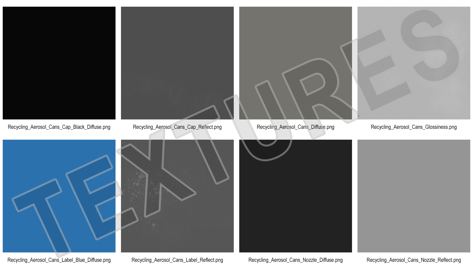 Blue Recycling Aerosol Can is a high quality, photo real 3d model that will enhance detail and realism to any of your rendering projects. The model has a fully textured, detailed design that allows for close-up renders, and was originally modeled in 3ds Max 2020 and rendered with V-Ray. Renders have no postprocessing!