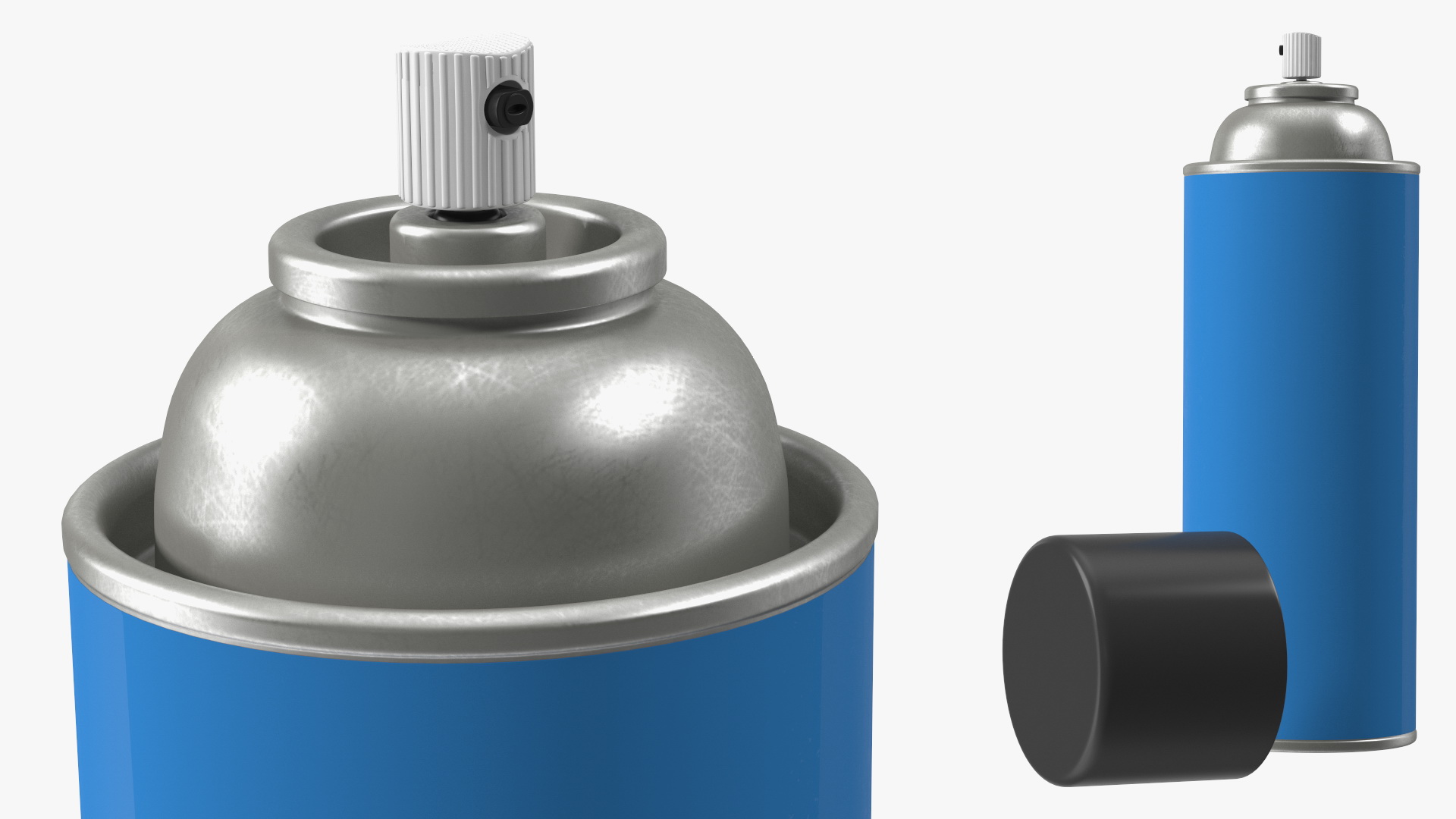Blue Recycling Aerosol Can is a three-dimensional model of aerosol can which is a widespread pressurized container designed to store and dispense a variety of products in a mist or spray form.
