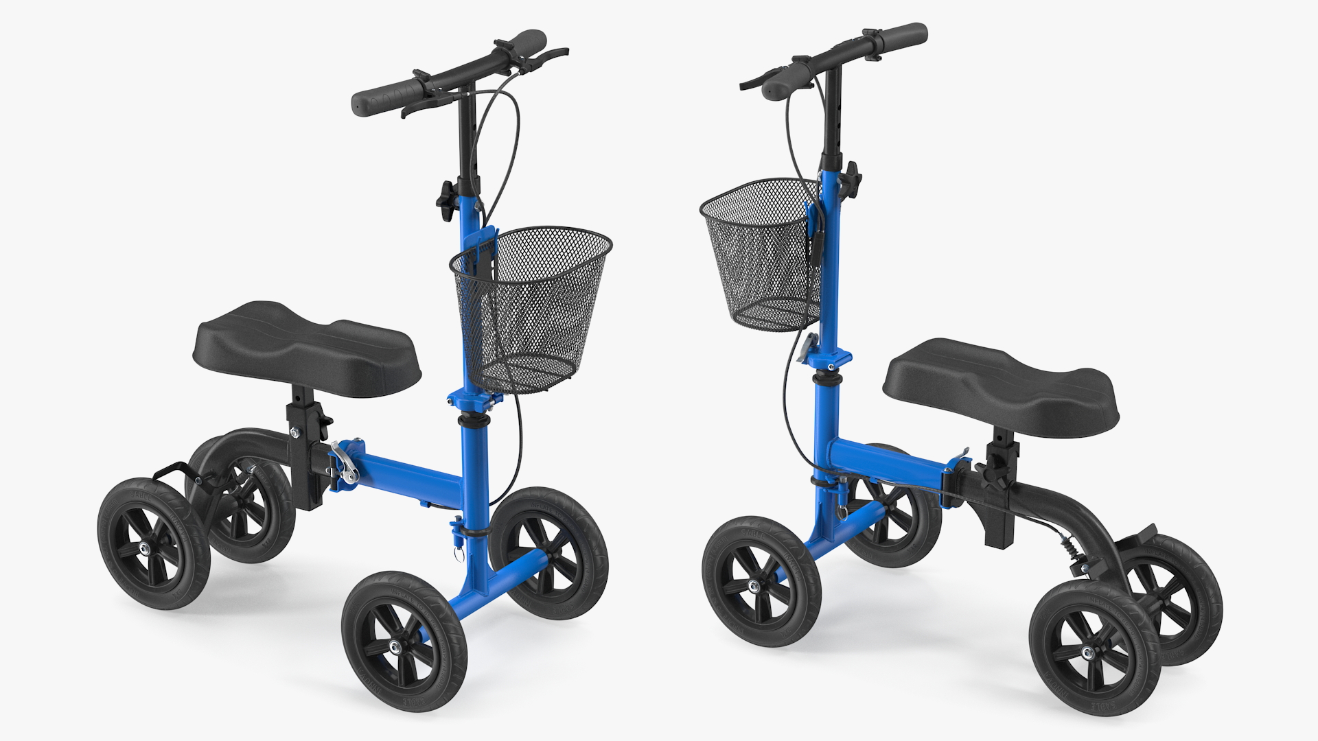 Blue Steerable Knee Scooter is a 3d model of mobility device that is used as an alternative to crutches or a traditional wheelchair.