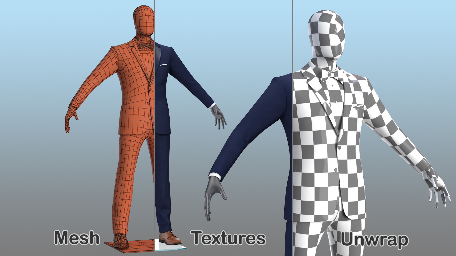 Blue Tuxedo Suit is a high quality, photo real 3d model that will enhance detail and realism to any of your rendering projects. The model has a fully textured, detailed design that allows for close-up renders, and was originally modeled in 3ds Max 2020 and rendered with V-Ray. Renders have no postprocessing!