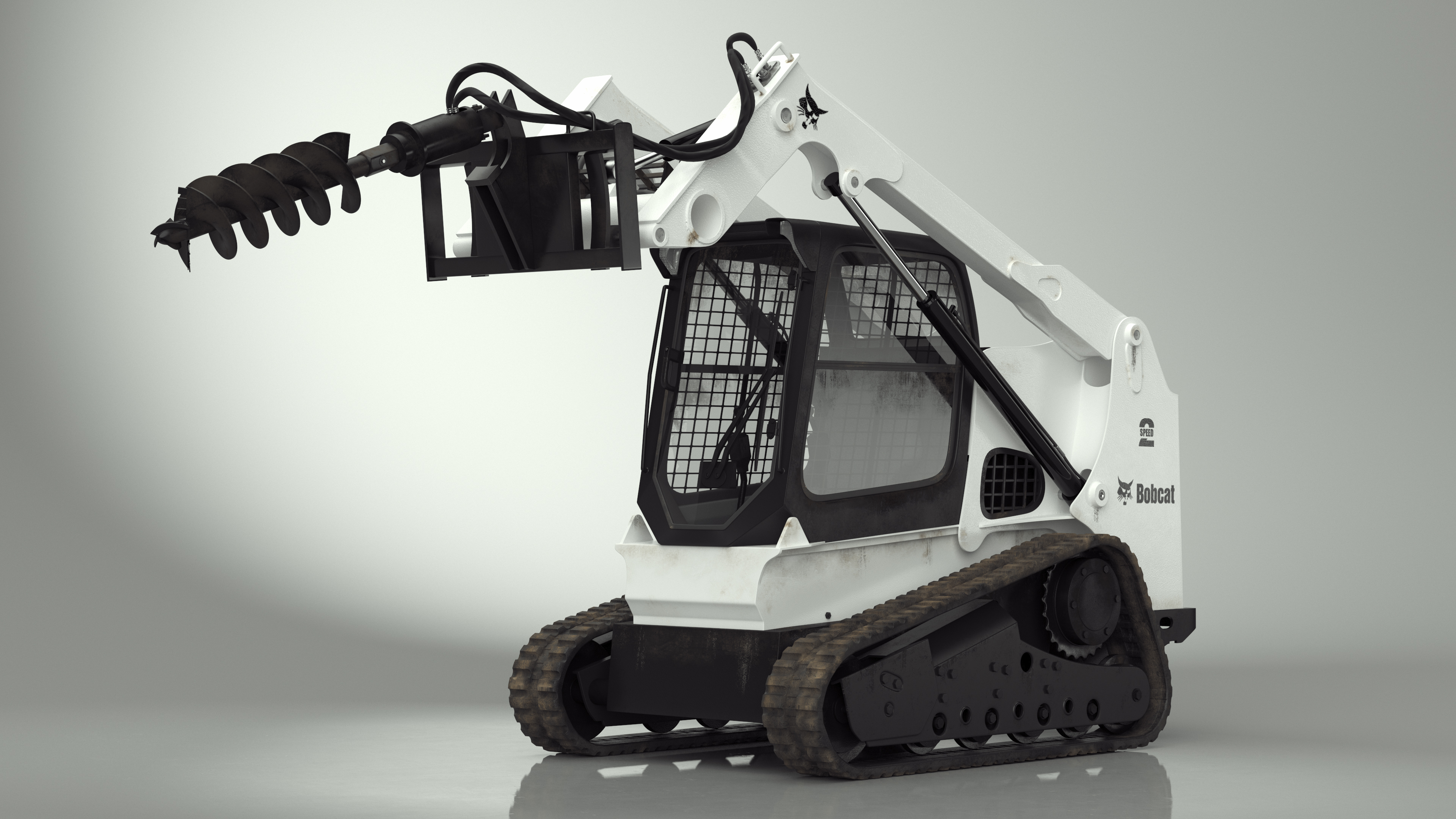 Bobcat Track Loader with Auger Rigged is a 3d model of type of construction equipment designed for digging holes in various terrains.
