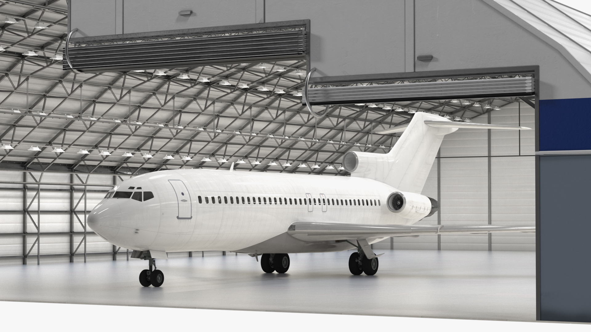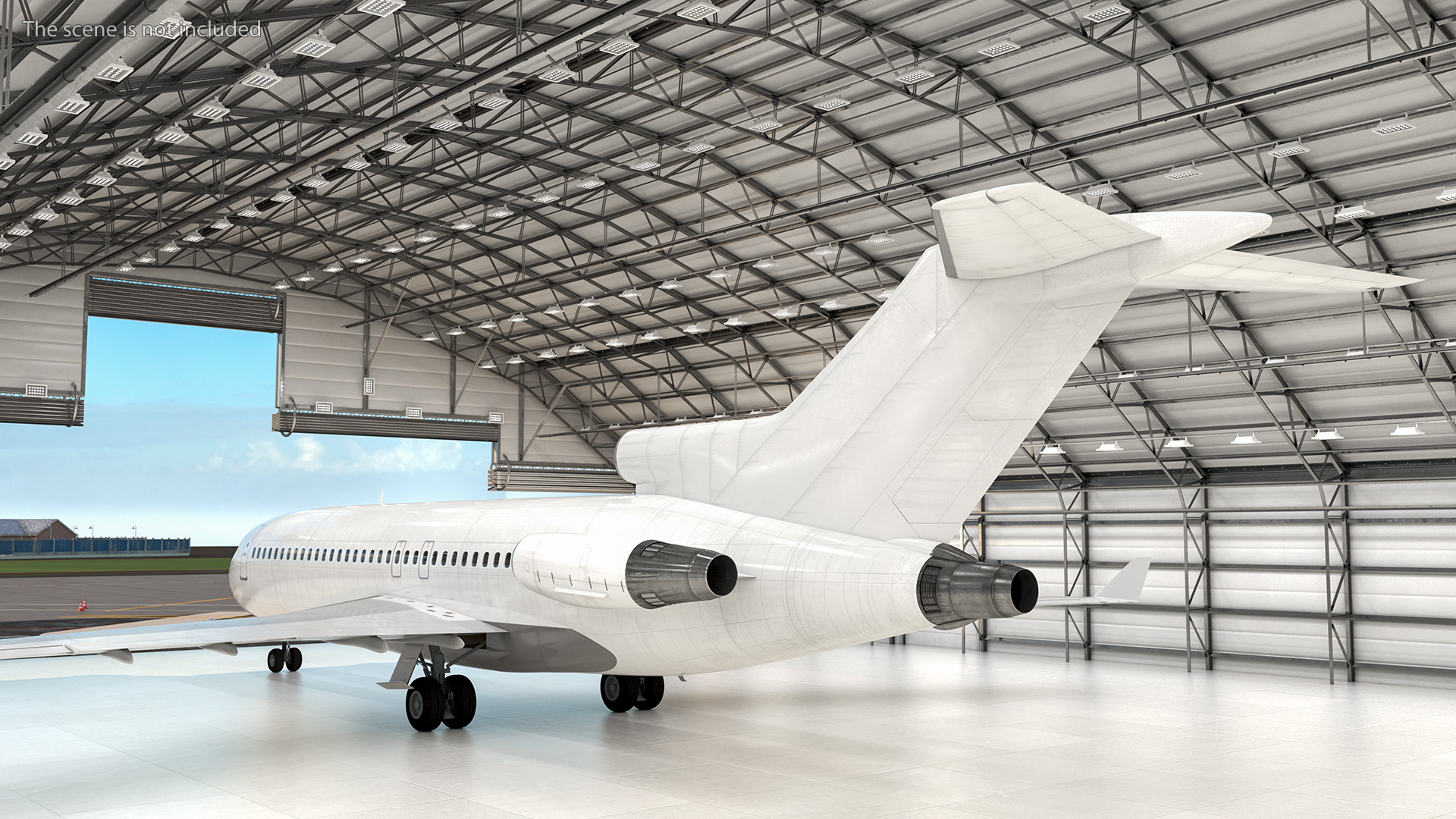 Boeing 727 100 Private Generic Maintained In Aircraft Hangar Riggeed is a 3d model of an American narrow-body airliner that was developed and produced by Boeing Commercial Airplanes. The airplane is placed in a metal hangar, that is a closed building structure to hold aircrafts for accommodation and maintenance. The first 727-100 rolled out November 27, 1962 and entered service on February 1, 1964. Boeing 727 100 was created at the same time as the Soviet Tu-154 aircraft, and had an almost identical layout scheme. Both aircraft formed the backbone of domestic air transportation to the USA and the USSR, respectively, were actively exported and lasted in operation for almost 50 years. The 133ft (40.5m) long 727-100 typically carries 106 passengers in two classes over 2,250nmi (4,170km), or 129 in a single class. Airport noise regulations have led to hush kit installations.