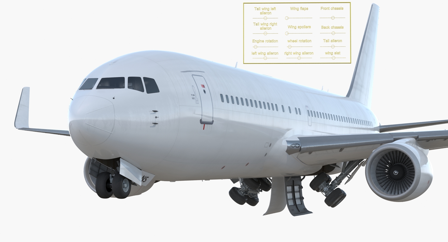 Boeing 767 200ER Generic Rigged is fully rigged and is ready to be animated. You can easily position it the way you need or animate it the way your project requires using helpers in 3D Studio Max. See the turntable to get an idea of how rigging works.