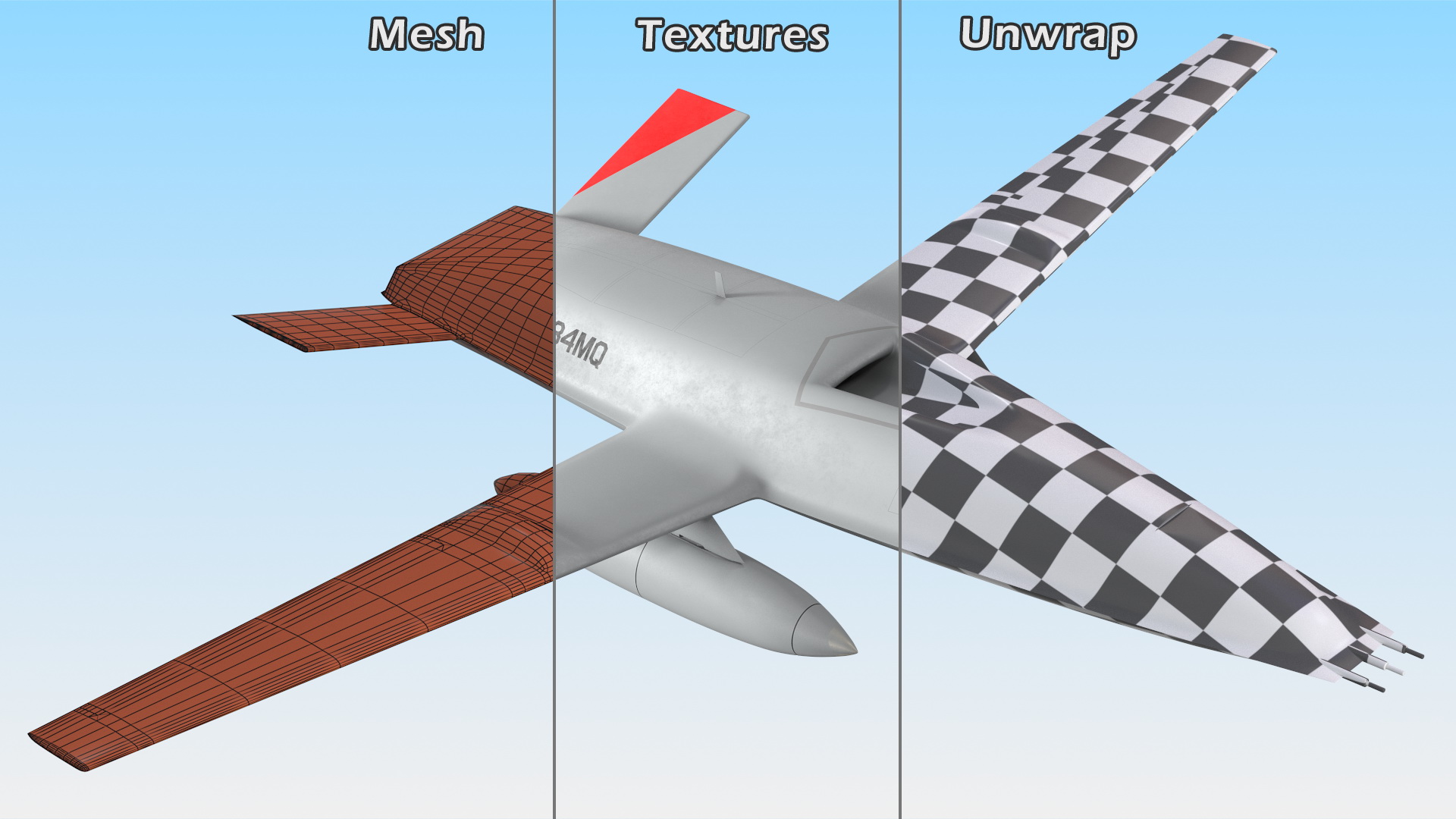 Boeing MQ25 Stingray Aerial Refueling Drone Flight is a high quality, photo real 3d model that will enhance detail and realism to any of your rendering projects. The model has a fully textured, detailed design that allows for close-up renders, and was originally modeled in 3ds Max 2020 and rendered with V-Ray. Renders have no postprocessing!