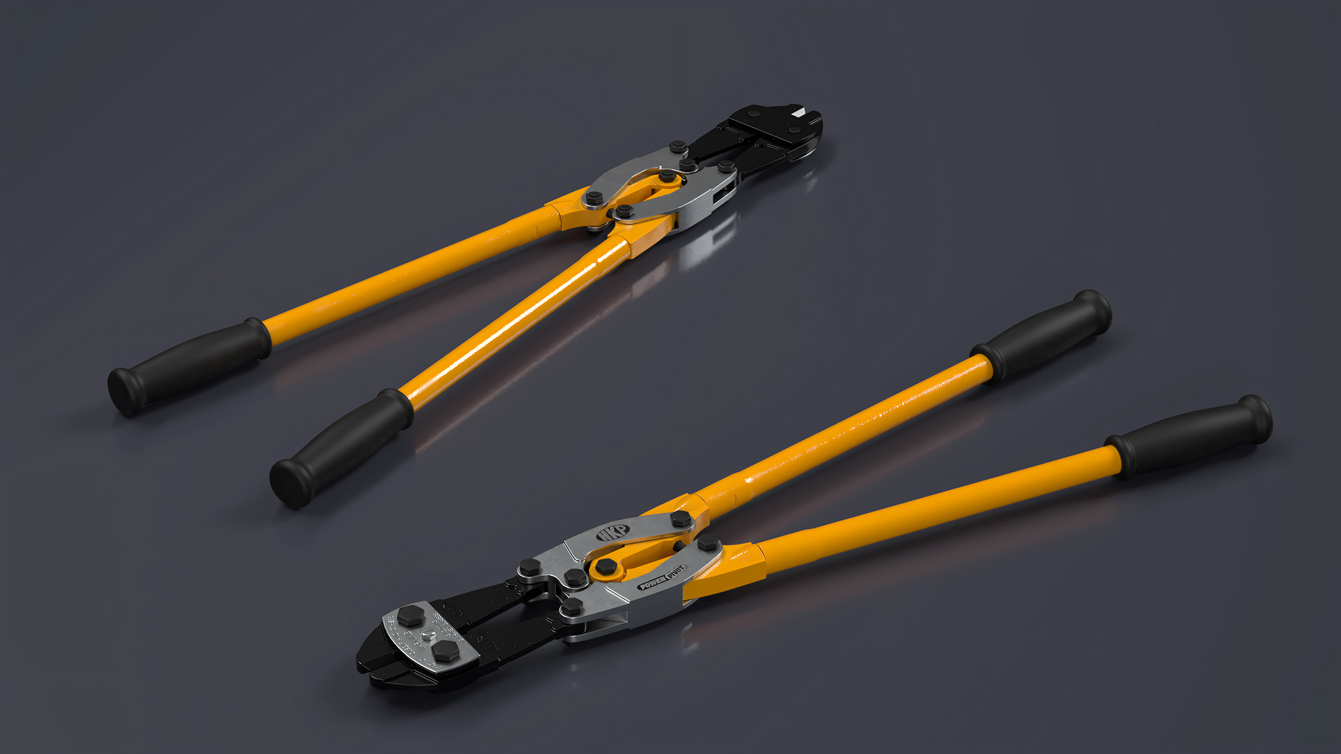 Bolt Cutter Tool Yellow Rigged is a three-dimensional model of manual bolt cutter which is a handheld tool designed for cutting through metal rods, bolts, chains, and wires.