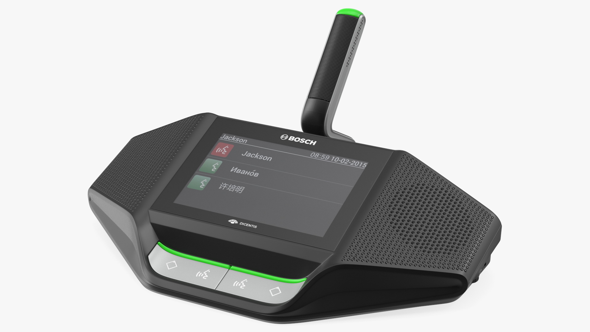 Bosch Dicentis Wireless Discussion Device with Touchscreen, voting feature, directive microphone, and speaker accessory an item of electronics discussion system.