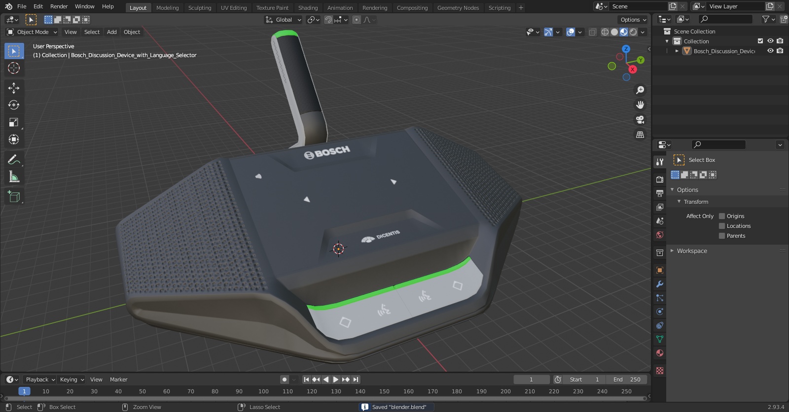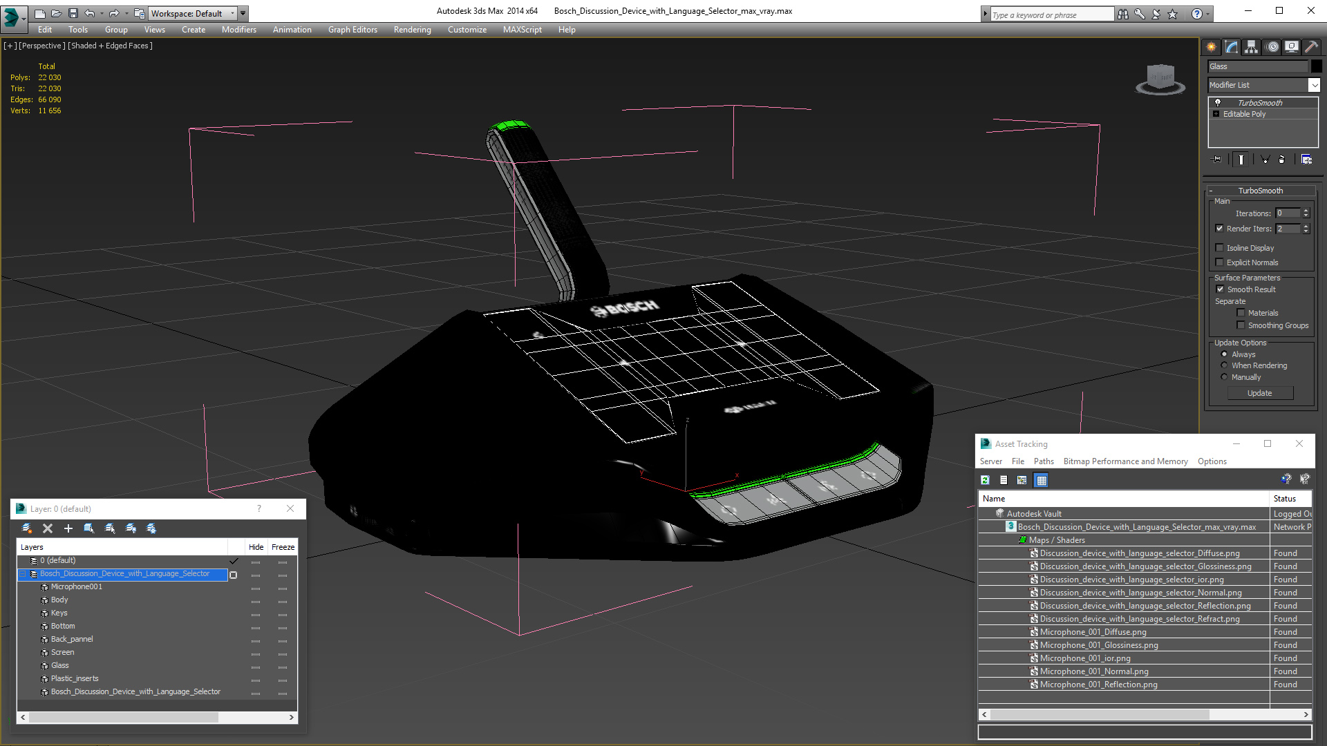 Bosch Discussion Device with Language Selector is a high quality, photo real 3d model that will enhance detail and realism to any of your rendering projects. The model has a fully textured, detailed design that allows for close-up renders, and was originally modeled in 3ds Max 2020 and rendered with V-Ray. Renders have no postprocessing!