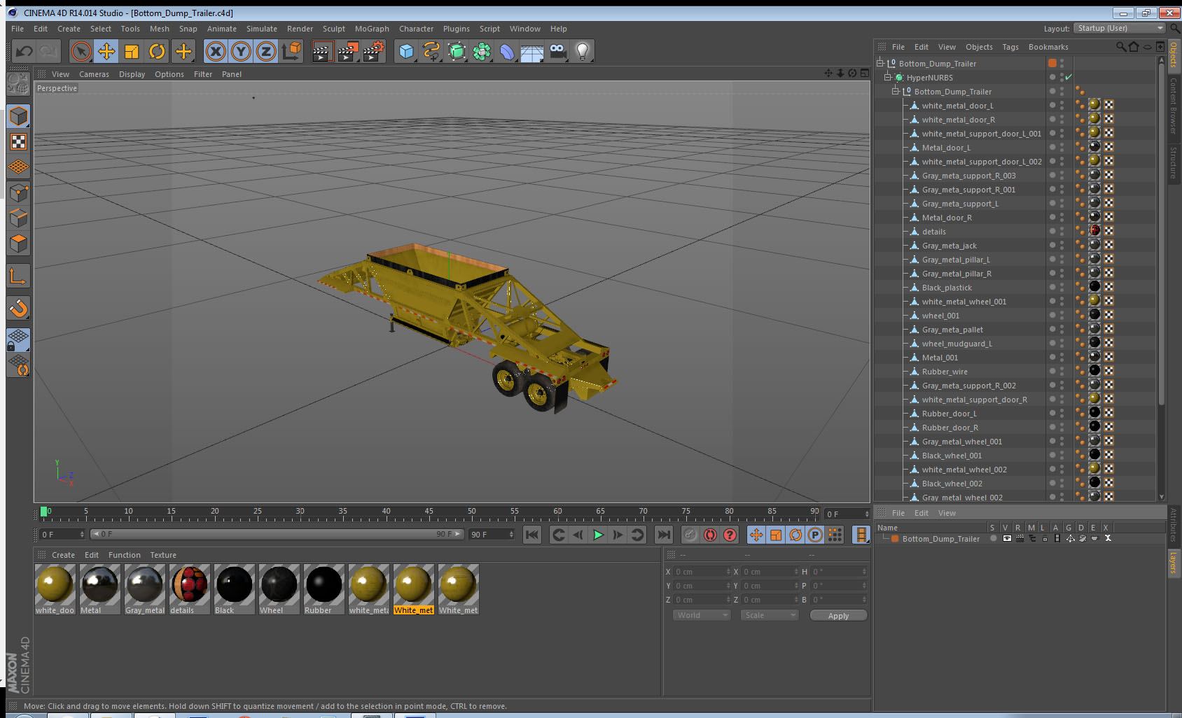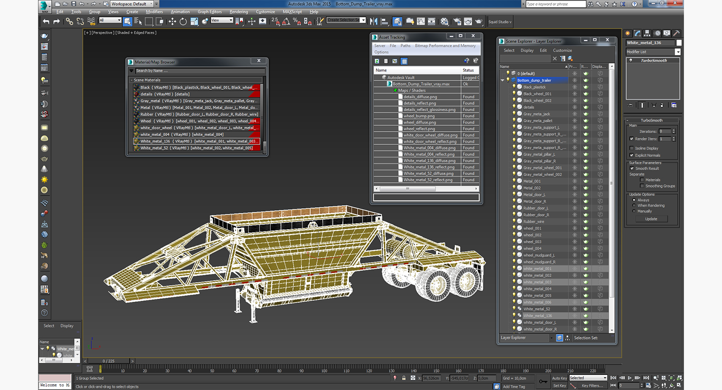 Bottom Dump Trailer is a high quality, photo real 3d model that will enhance detail and realism to any of your rendering projects. The model has a fully textured, detailed design that allows for close-up renders, and was originally modeled in 3ds Max 2020 and rendered with V-Ray. Renders have no postprocessing!