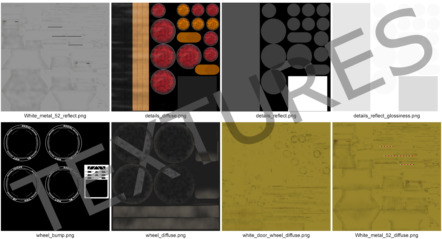 All textures and materials are included and mapped. (All colors can be easily modified.)