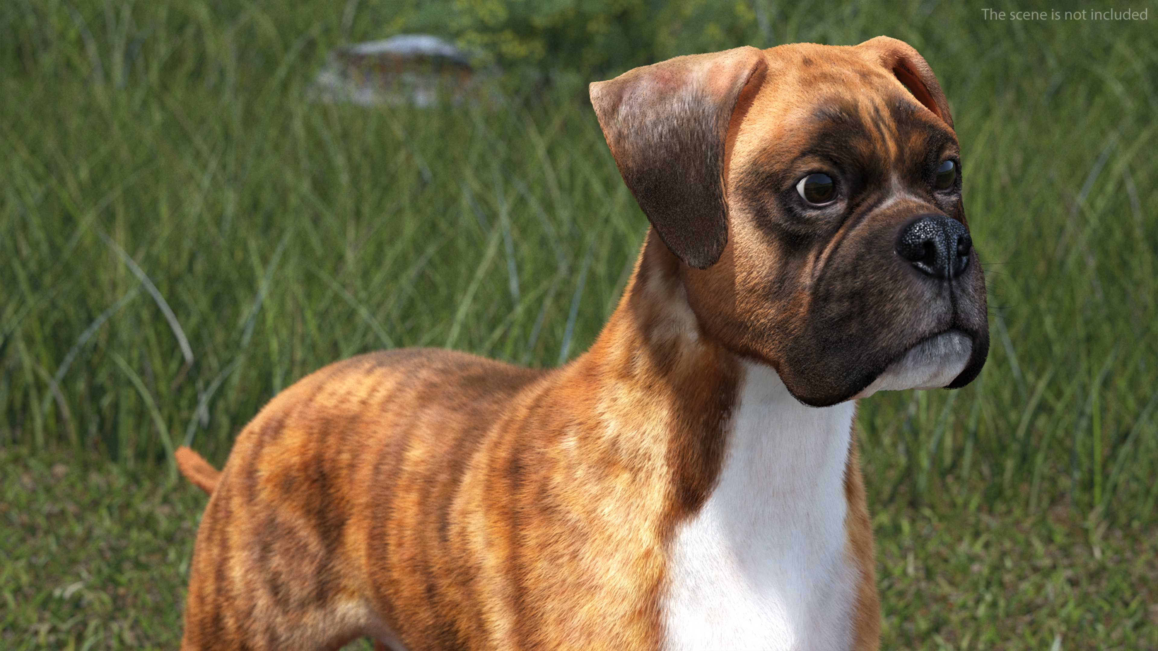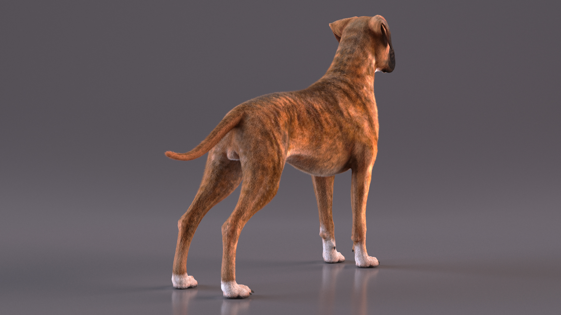 Boxer Dog Tiger Colored Fur is a three-dimensional model of boxer bred dog animal, that is a medium-sized breed of domestic dog known for its muscular build, short coat, and distinctive face.