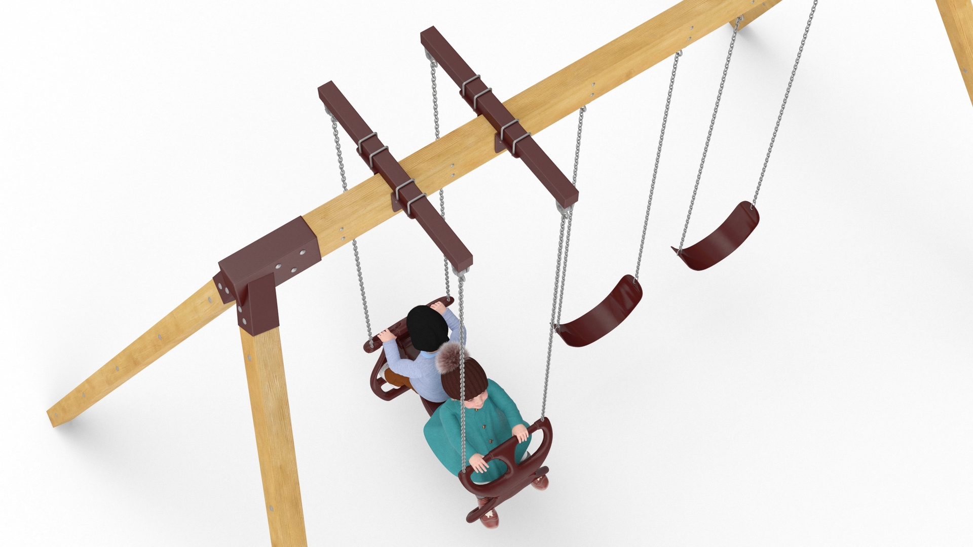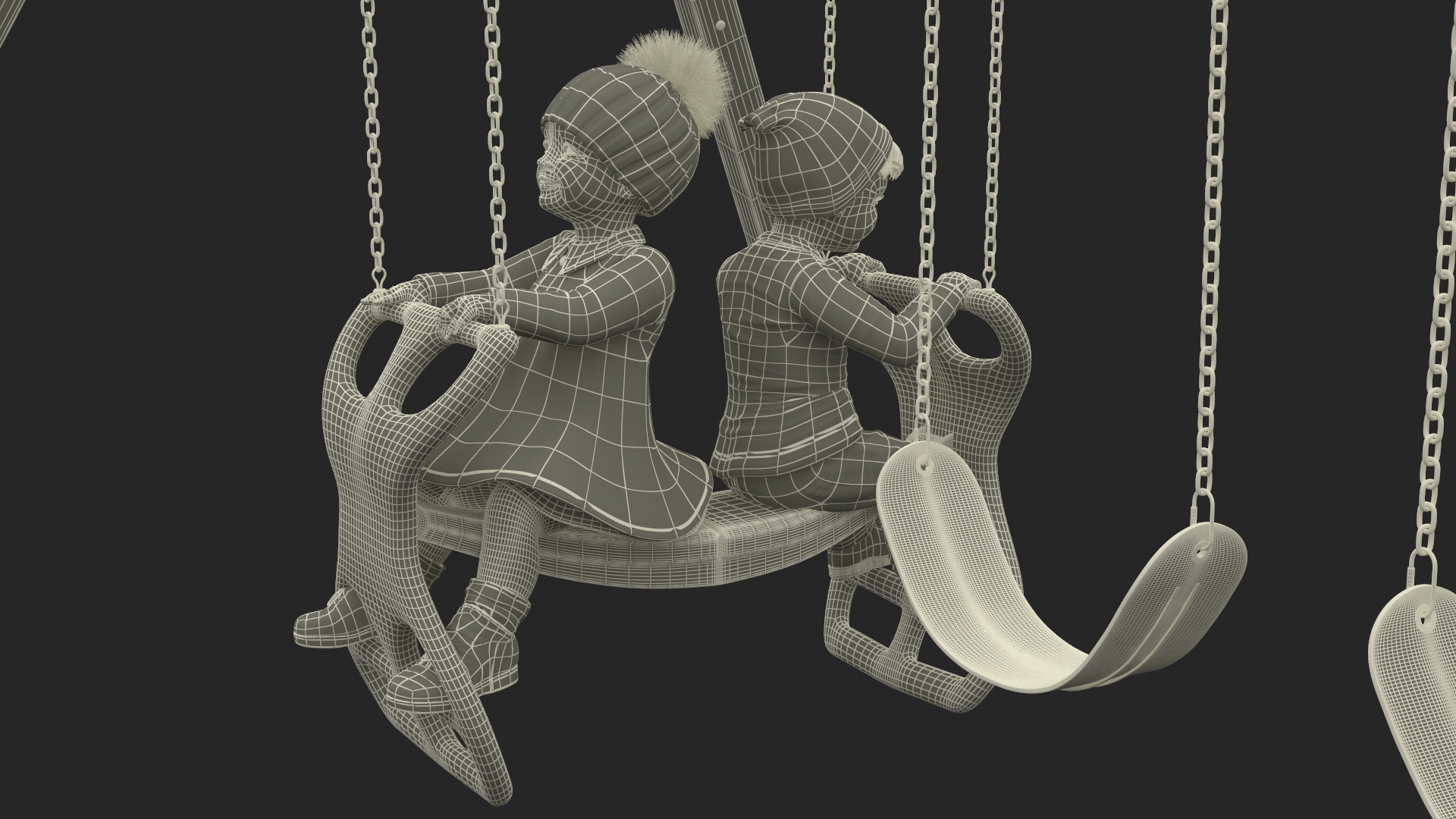 Boy and Girl on Swing is a three-dimensional model of toddler age girl and boy who are human babies (little female kid and little male kid), and who are cute human infants in the early stages of life).