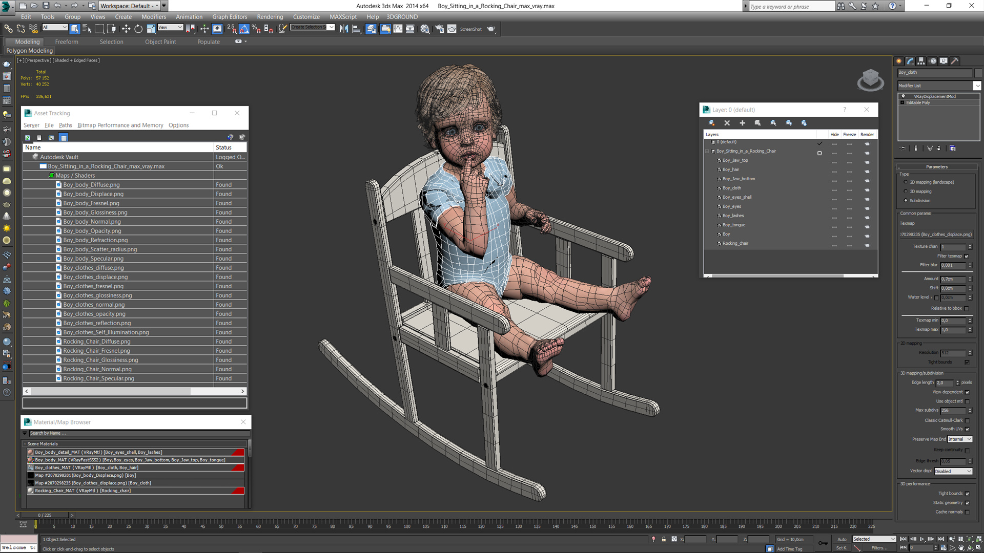 Boy Sitting in a Rocking Chair is a high quality, photo real 3d model that will enhance detail and realism to any of your rendering projects. The model has a fully textured, detailed design that allows for close-up renders, and was originally modeled in 3ds Max 2020 and rendered with V-Ray. Renders have no postprocessing!