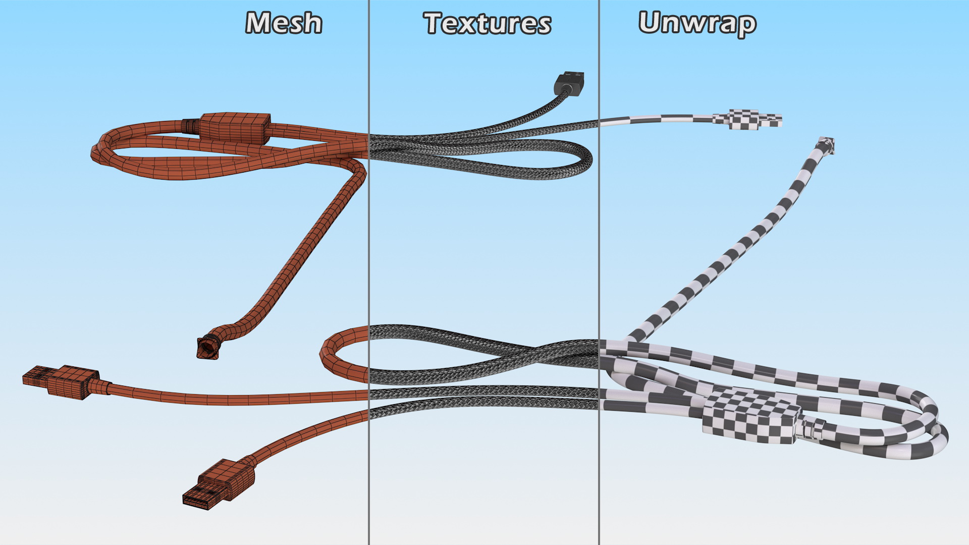 Braided Nylon USB Double Cable is a high quality, photo real 3d model that will enhance detail and realism to any of your rendering projects. The model has a fully textured, detailed design that allows for close-up renders, and was originally modeled in 3ds Max 2020 and rendered with V-Ray. Renders have no postprocessing!