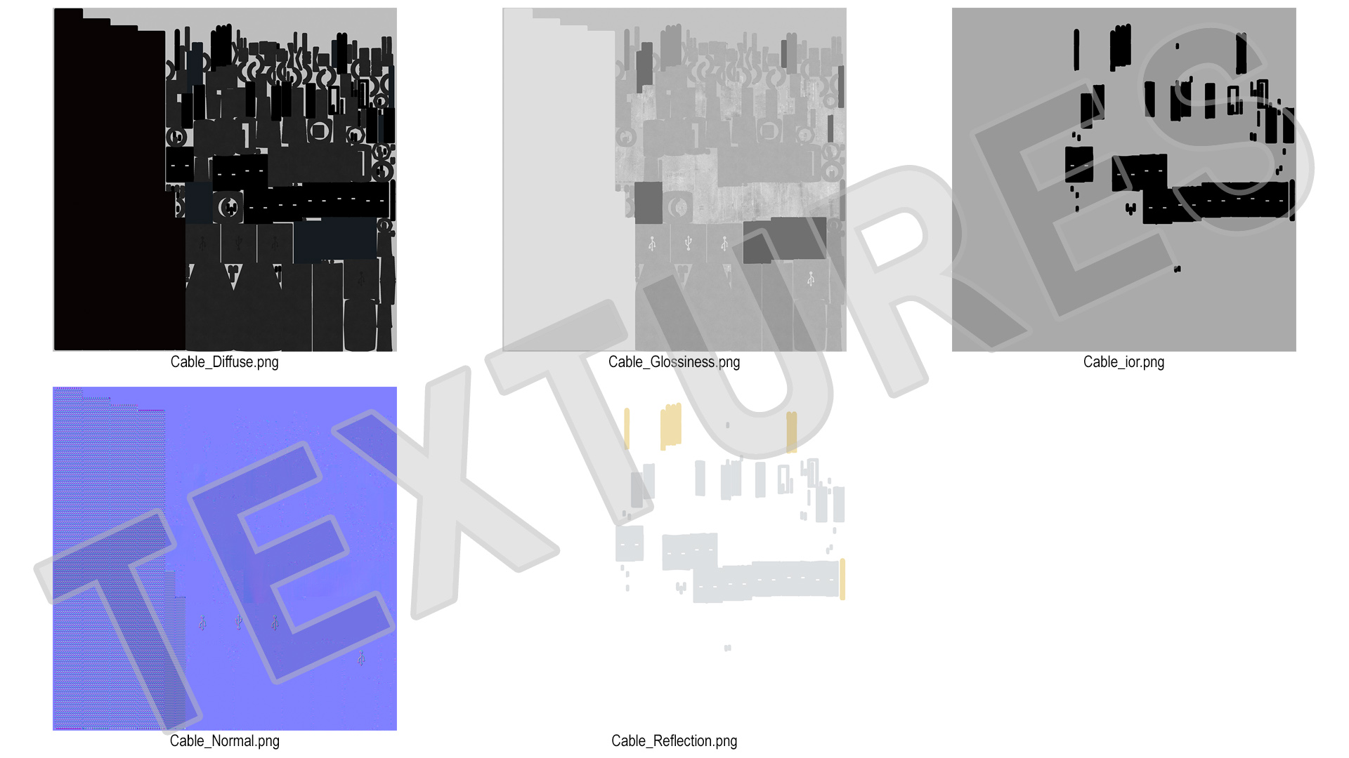 All textures and materials are included and mapped. (All colors can be easily modified.)