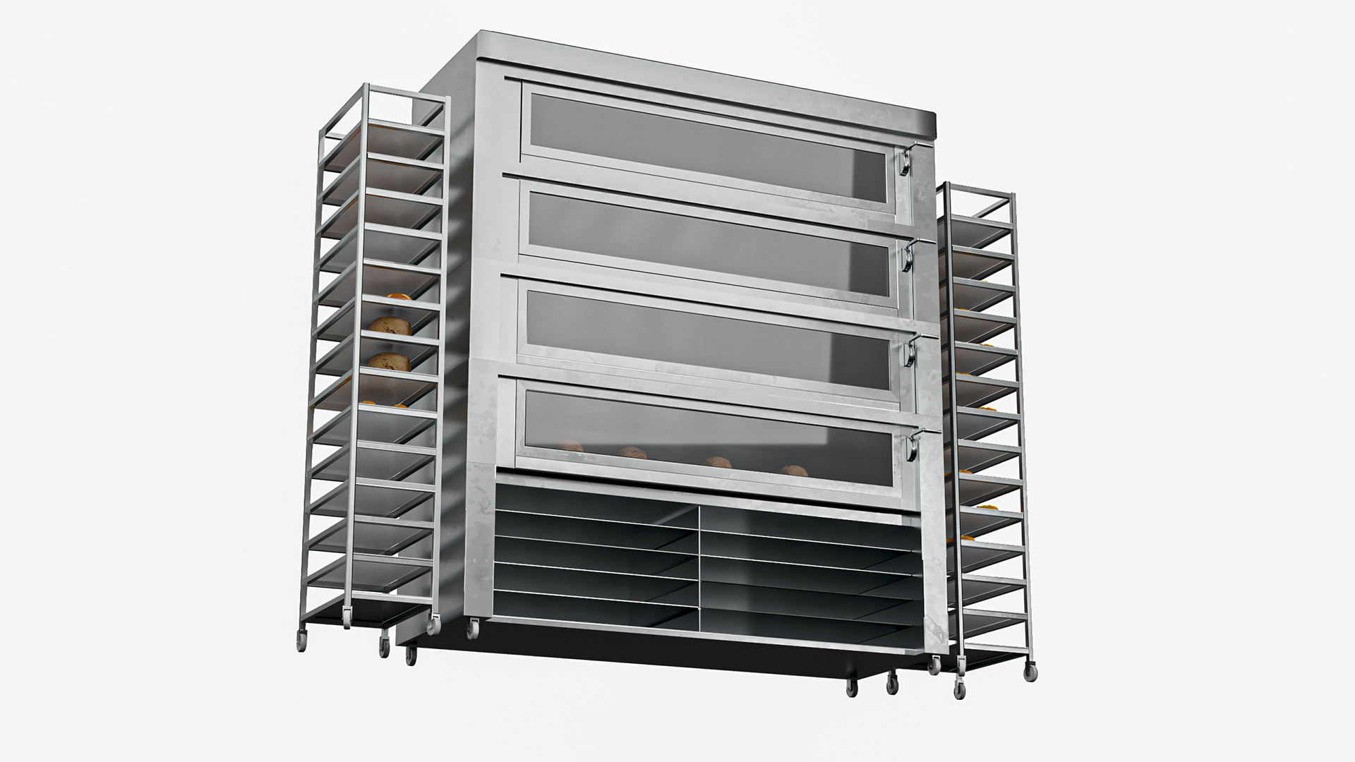 Bread Baking Oven with Racks is a 3d model of a commercial-grade bread baking oven equipped with multiple racks for efficient baking.