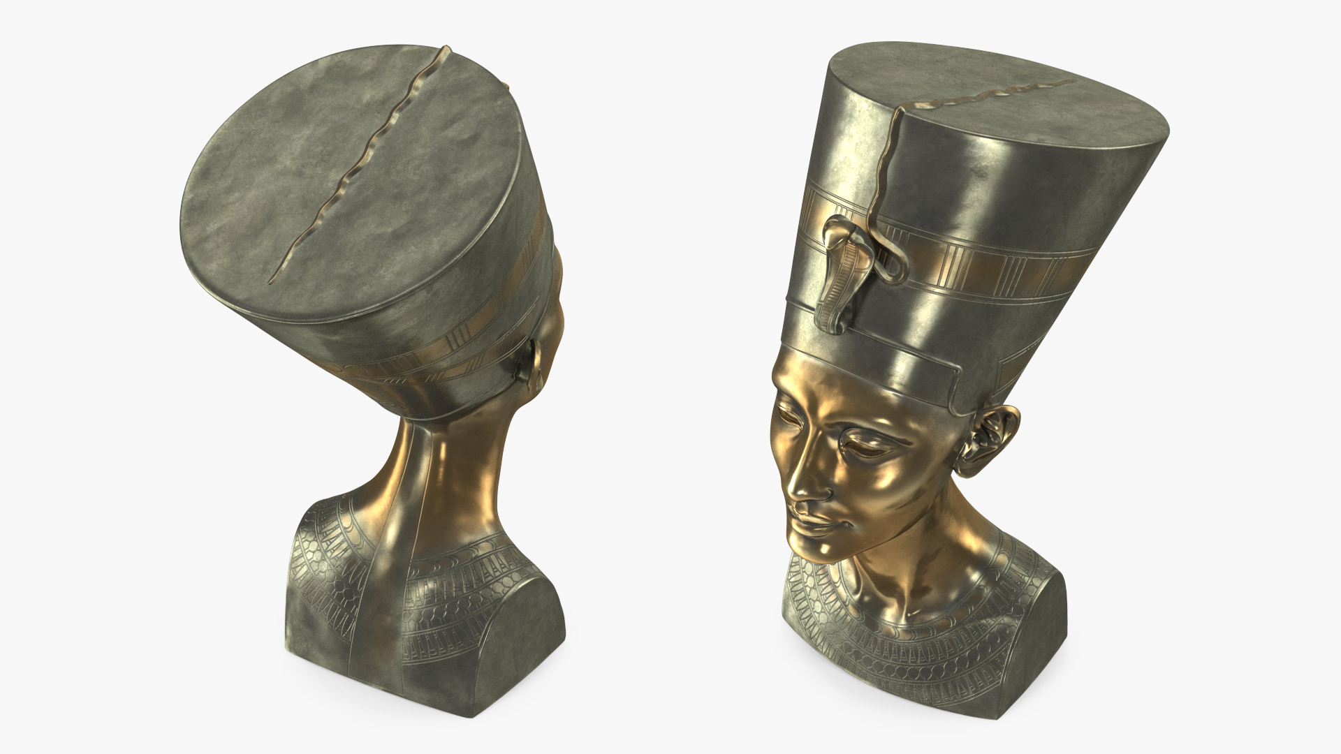 Bronze Bust of Nefertiti is a three-dimensional model of a brass metal bust of the famous Great Royal Wife of Egyptian pharaoh Akhenaten.