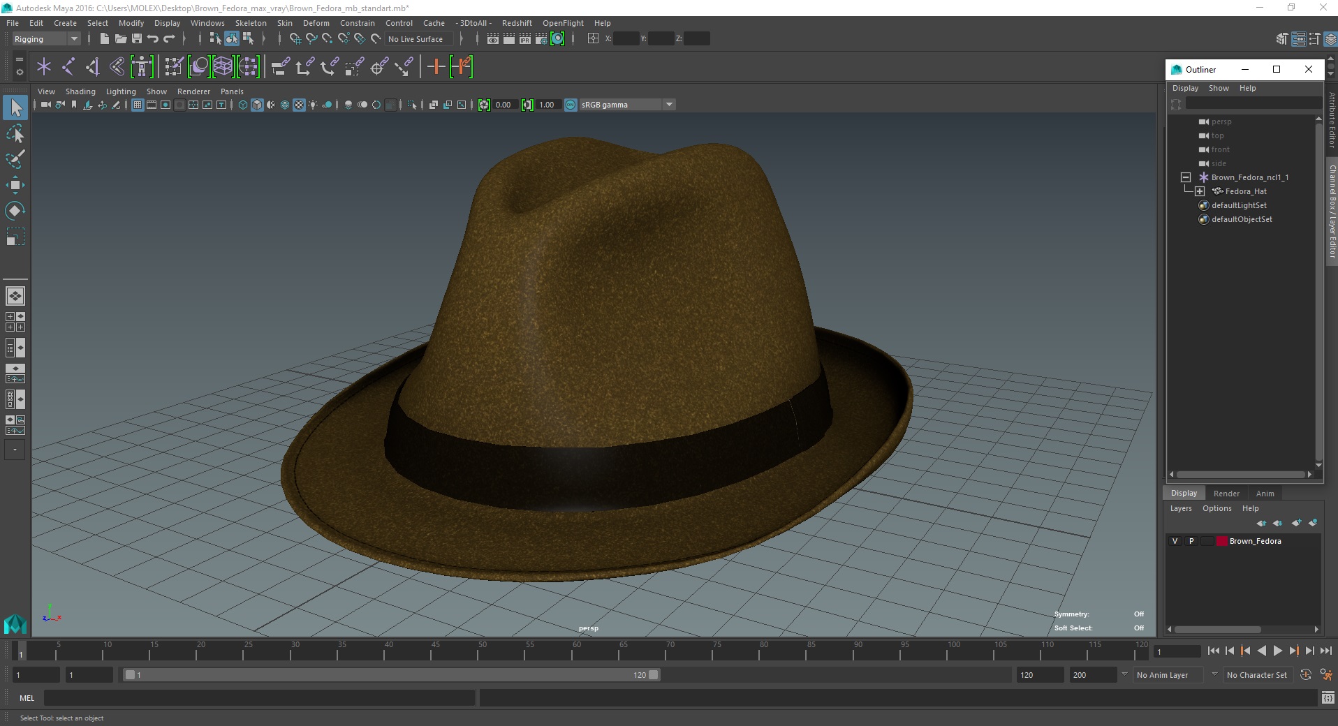 Brown Fedora is a three-dimensional model of popular medium brim head covering (fedora hat), which is worn for bad weather head protection, fashion wear, decorations and more.
