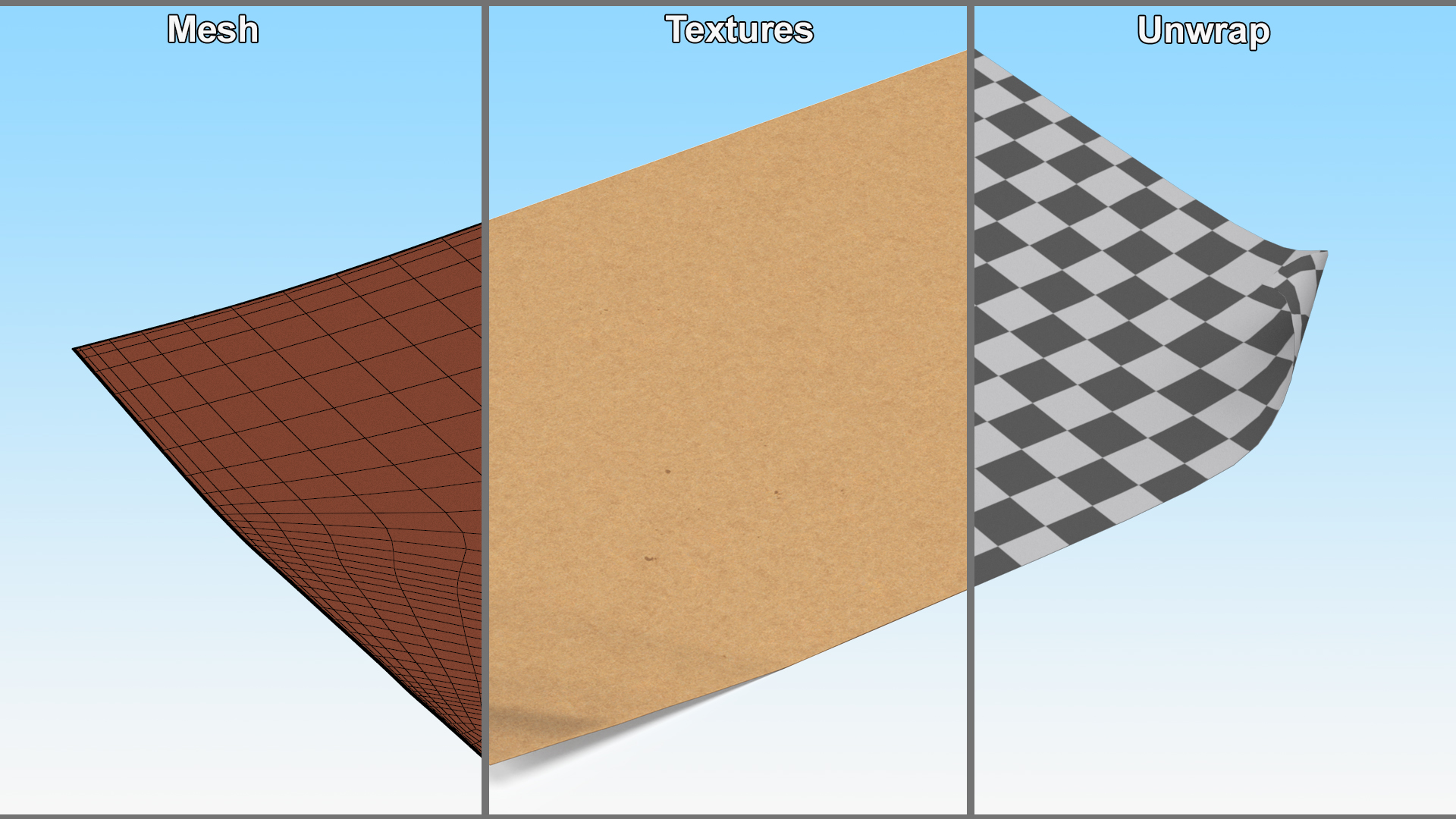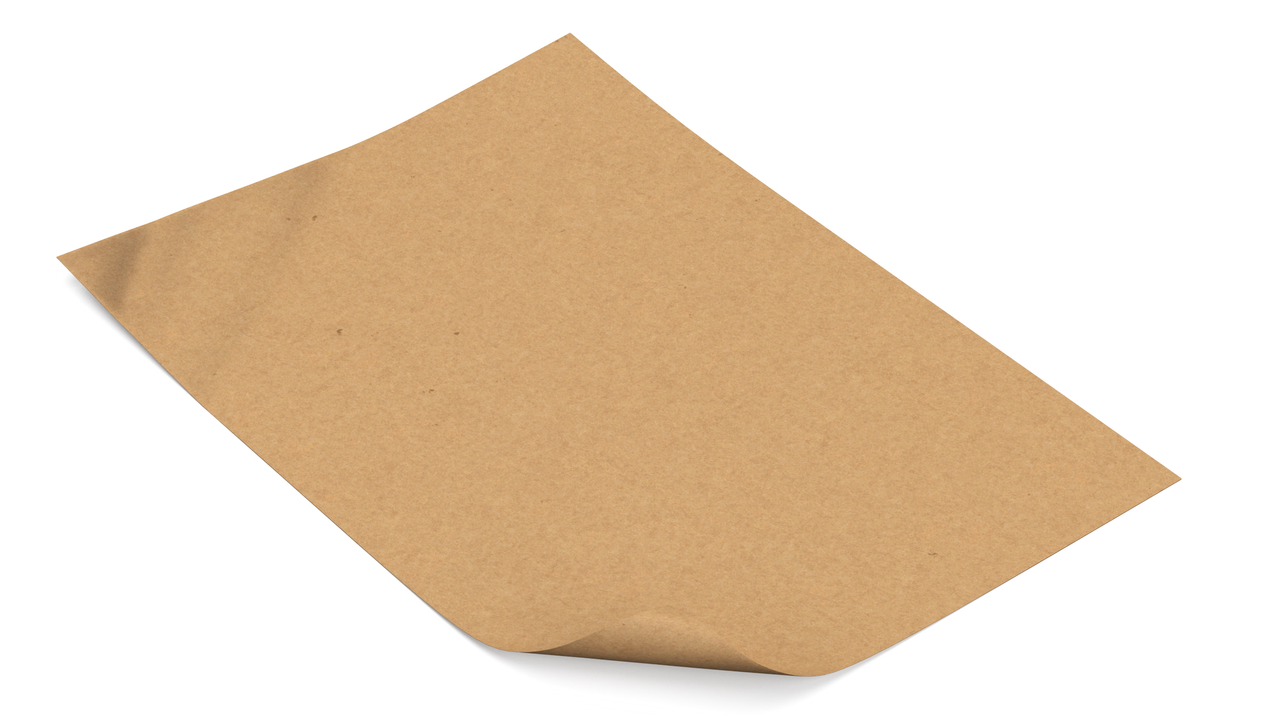 Brown Paper with Curled Corners is a three-dimensional model of piece of strong, smooth brown wrapping paper, which is kraft paper type wrapping material.