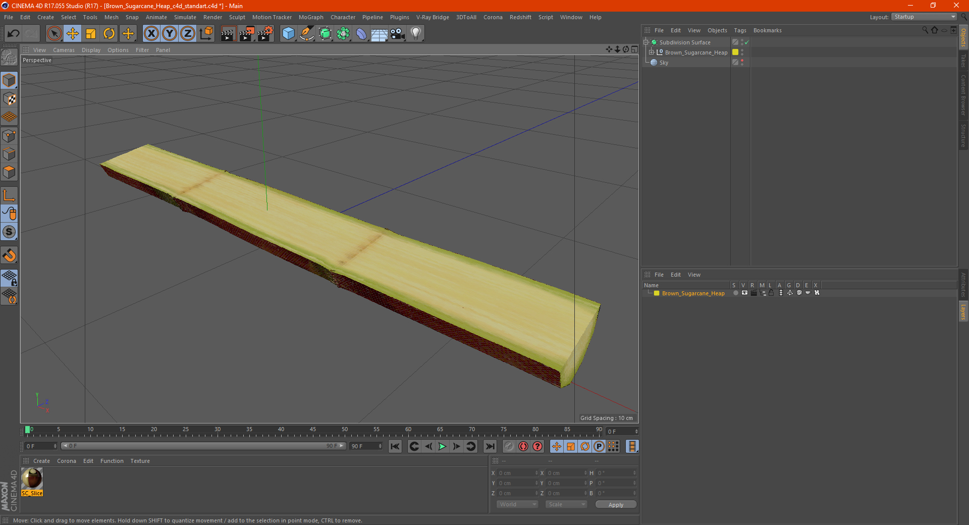 Brown Sugarcane Half Cut Piece is a high quality, photo real 3d model that will enhance detail and realism to any of your rendering projects. The model has a fully textured, detailed design that allows for close-up renders, and was originally modeled in 3ds Max 2020 and rendered with V-Ray. Renders have no postprocessing!