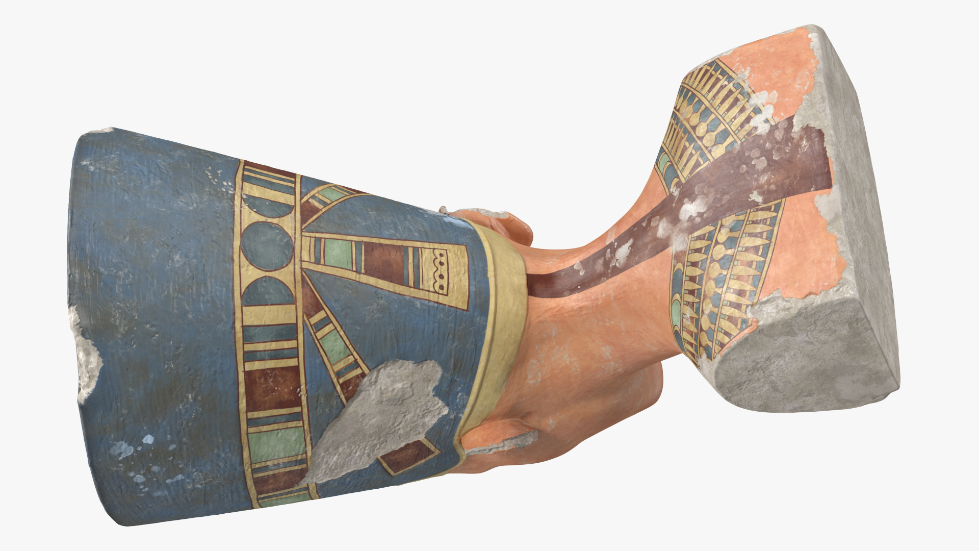 Bust of Queen Nefertiti is a three-dimensional model of a painted stucco-coated limestone bust of the Great Royal Wife of Egyptian pharaoh Akhenaten.