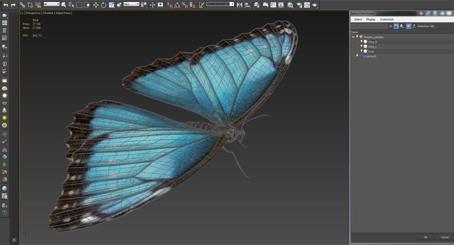 Butterfly Morpho Peleides is a high quality, photo real 3d model that will enhance detail and realism to any of your rendering projects. The model has a fully textured, detailed design that allows for close-up renders, and was originally modeled in 3ds Max 2020 and rendered with V-Ray. Renders have no postprocessing!