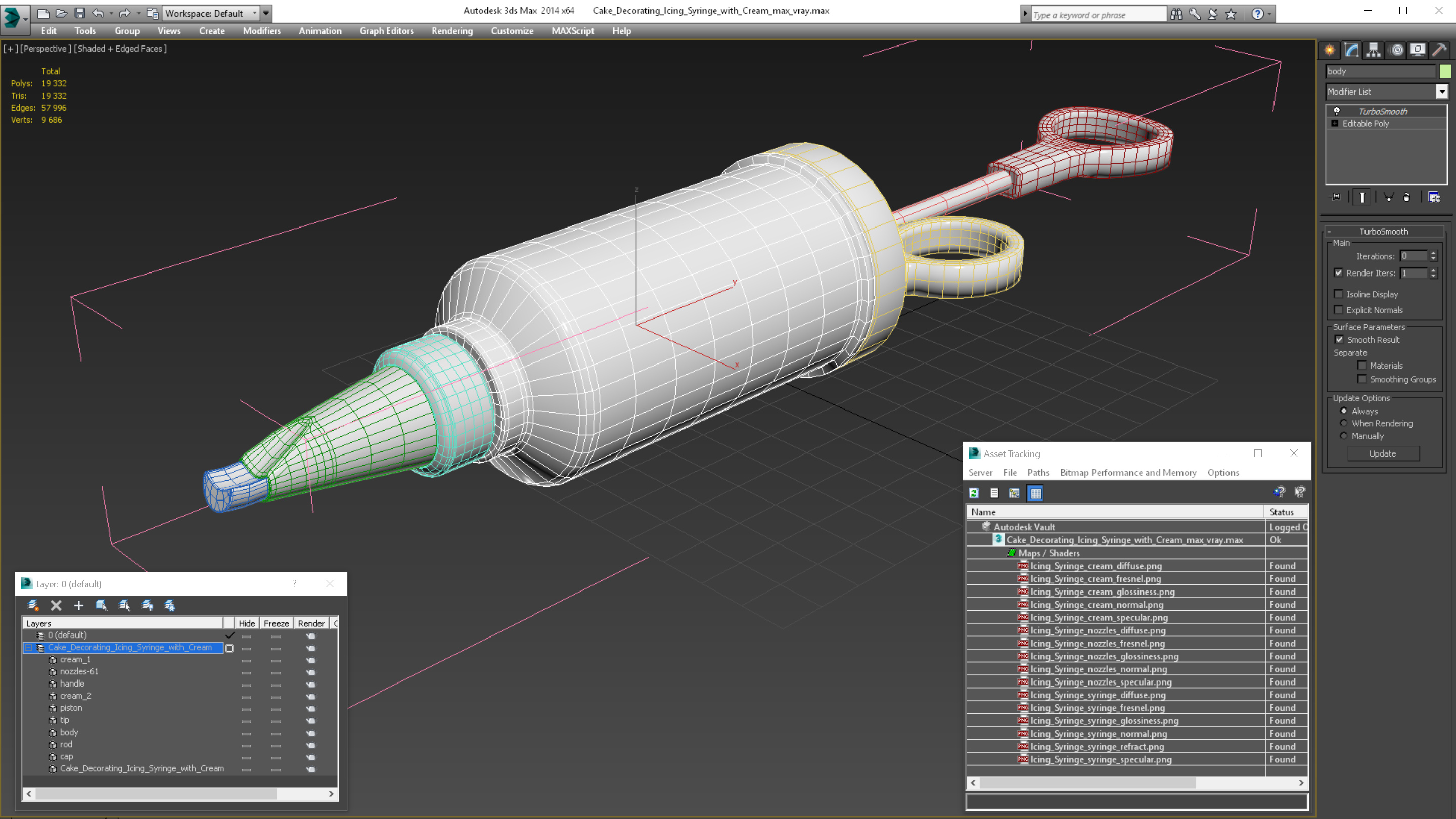 Cake Decorating Icing Syringe with Cream is a high quality, photo real 3d model that will enhance detail and realism to any of your rendering projects. The model has a fully textured, detailed design that allows for close-up renders, and was originally modeled in 3ds Max 2020 and rendered with V-Ray. Renders have no postprocessing!