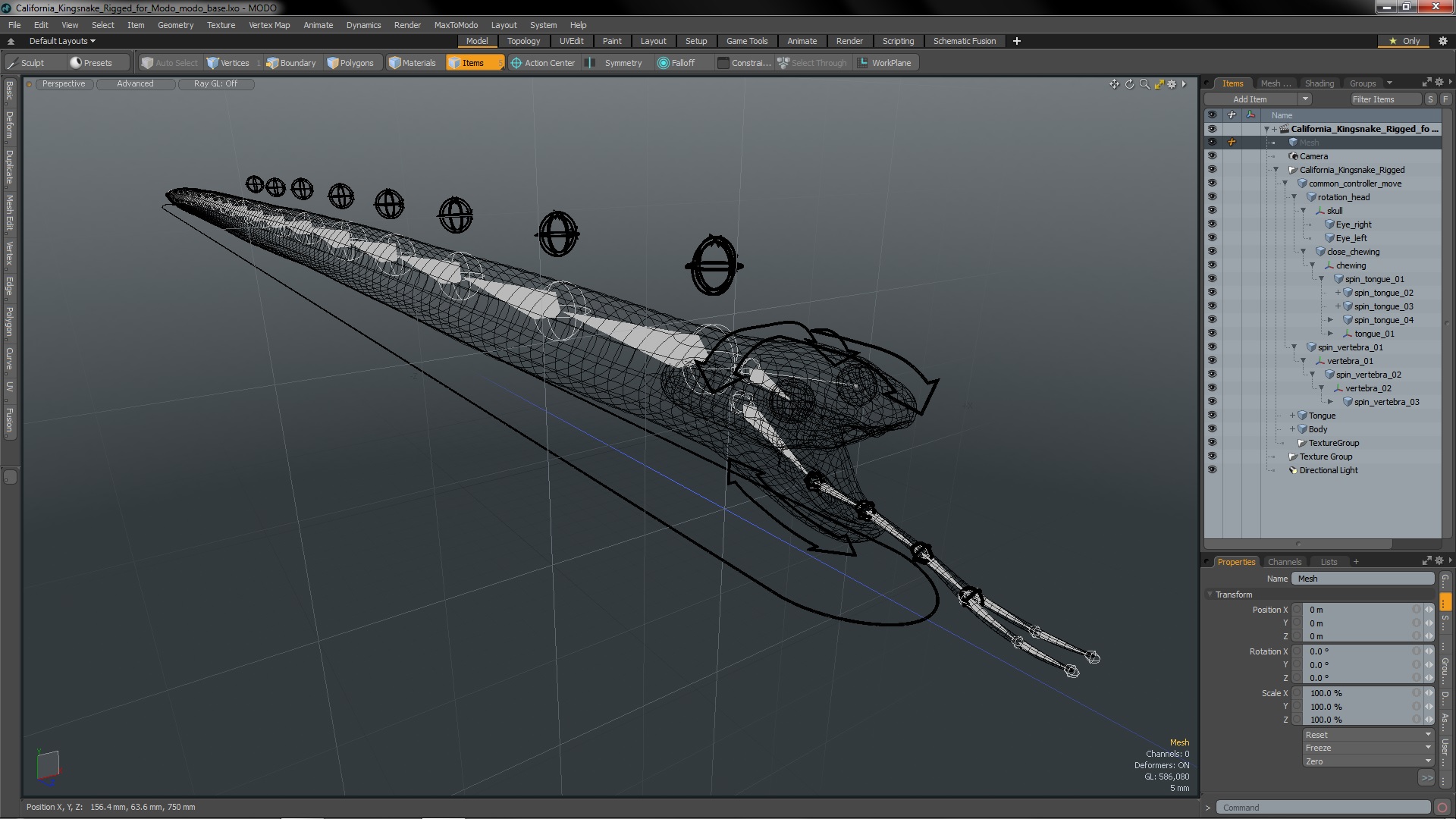 California Kingsnake Rigged for Modo is fully rigged and is ready to be animated. You can easily position it the way you need or animate it the way your project requires using helpers in 3D Studio Max. See the turntable to get an idea of how rigging works.