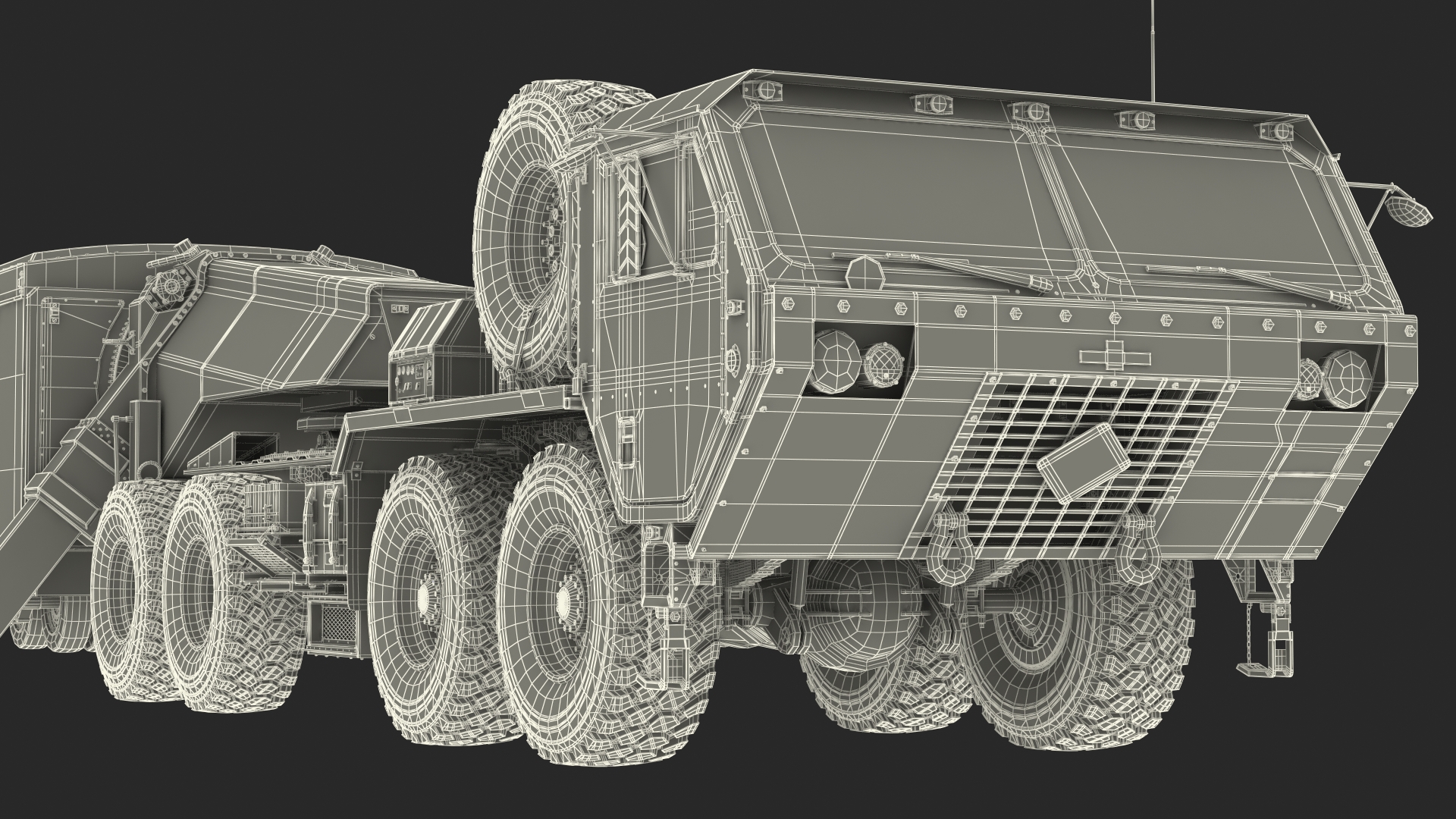 Camouflage M983 Tractor with TPY2 Radar Rigged is a high quality, photo real 3d model that will enhance detail and realism to any of your rendering projects. The model has a fully textured, detailed design that allows for close-up renders, and was originally modeled in 3ds Max 2020 and rendered with V-Ray. Renders have no postprocessing!