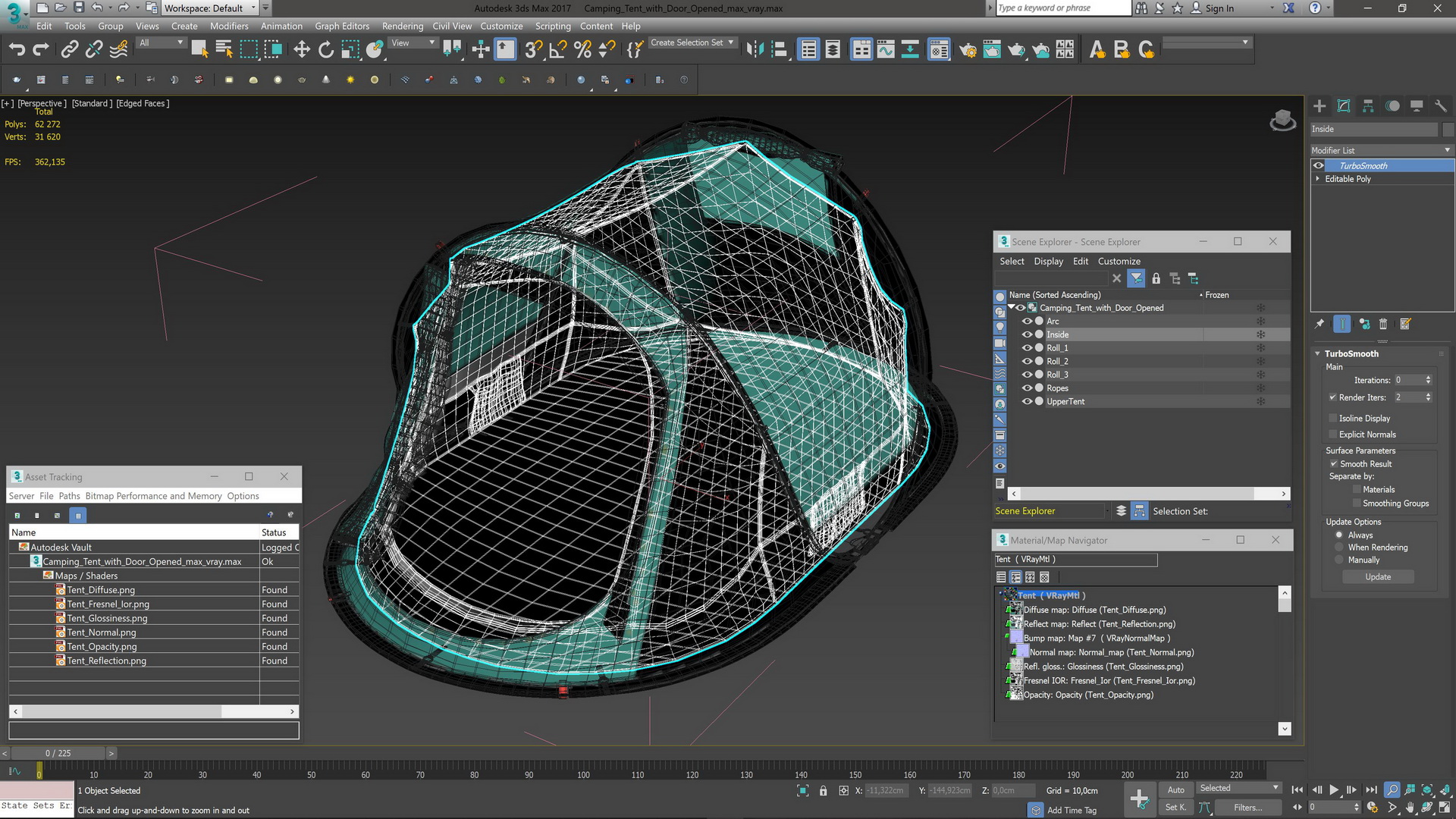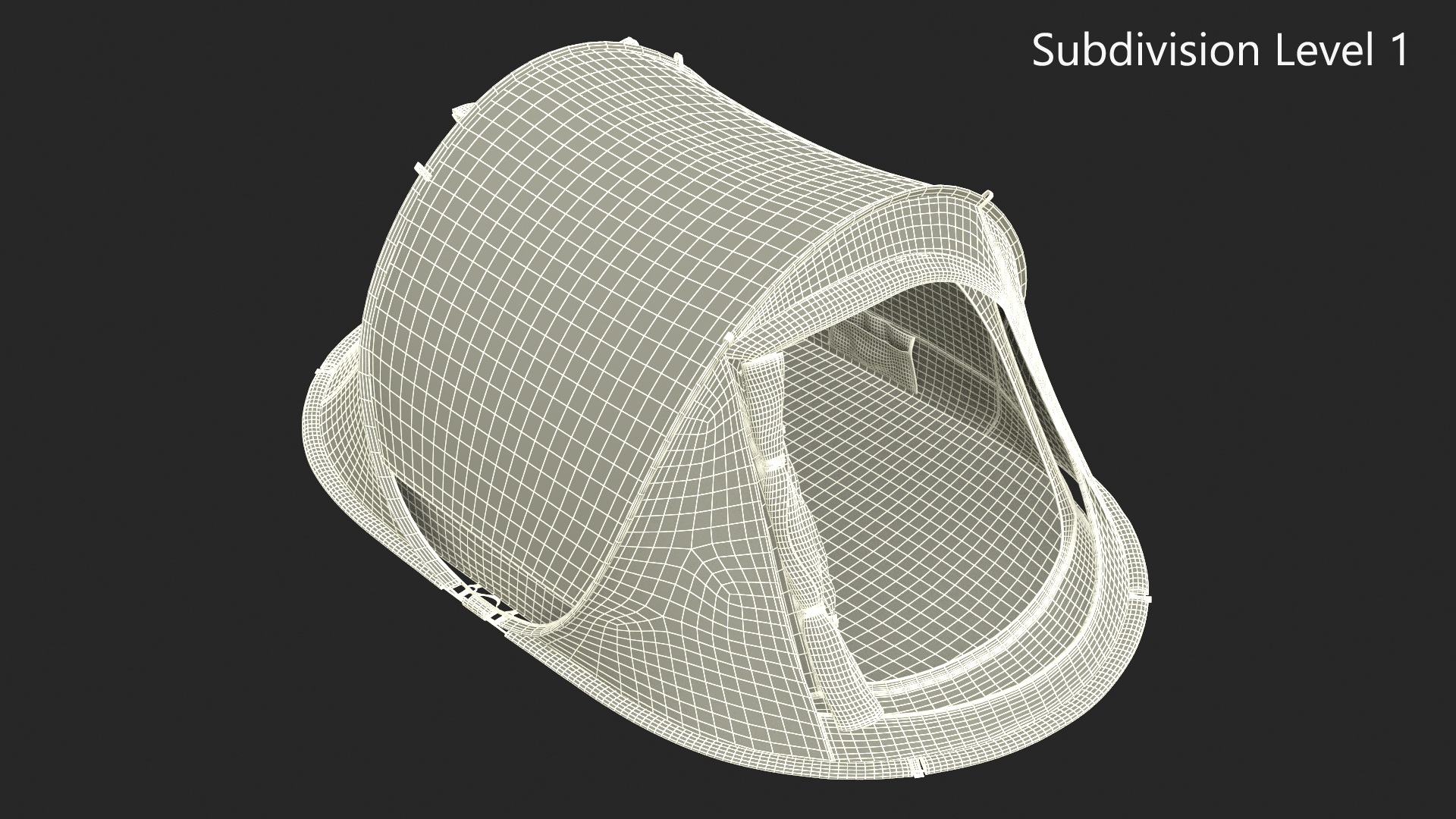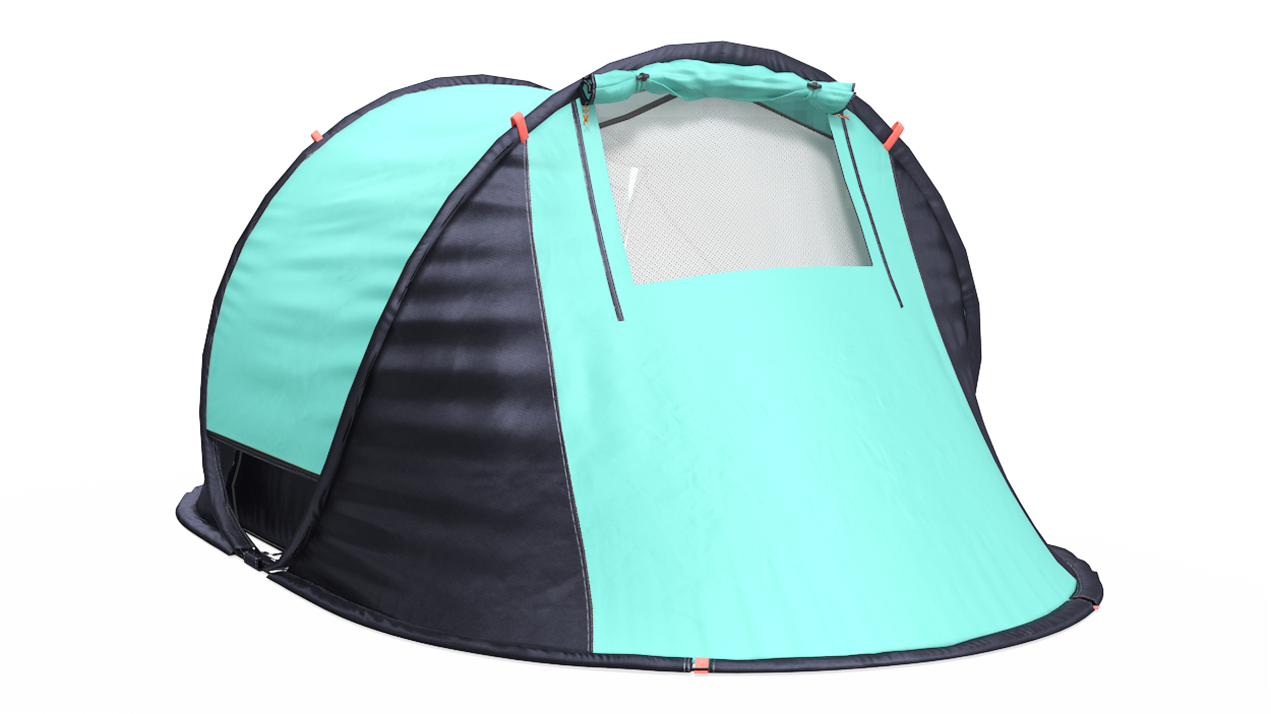 Camping Tent with Door Opened is a 3d model of portable shelter that is used for sleeping and protection from the elements while camping or outdoor activities.