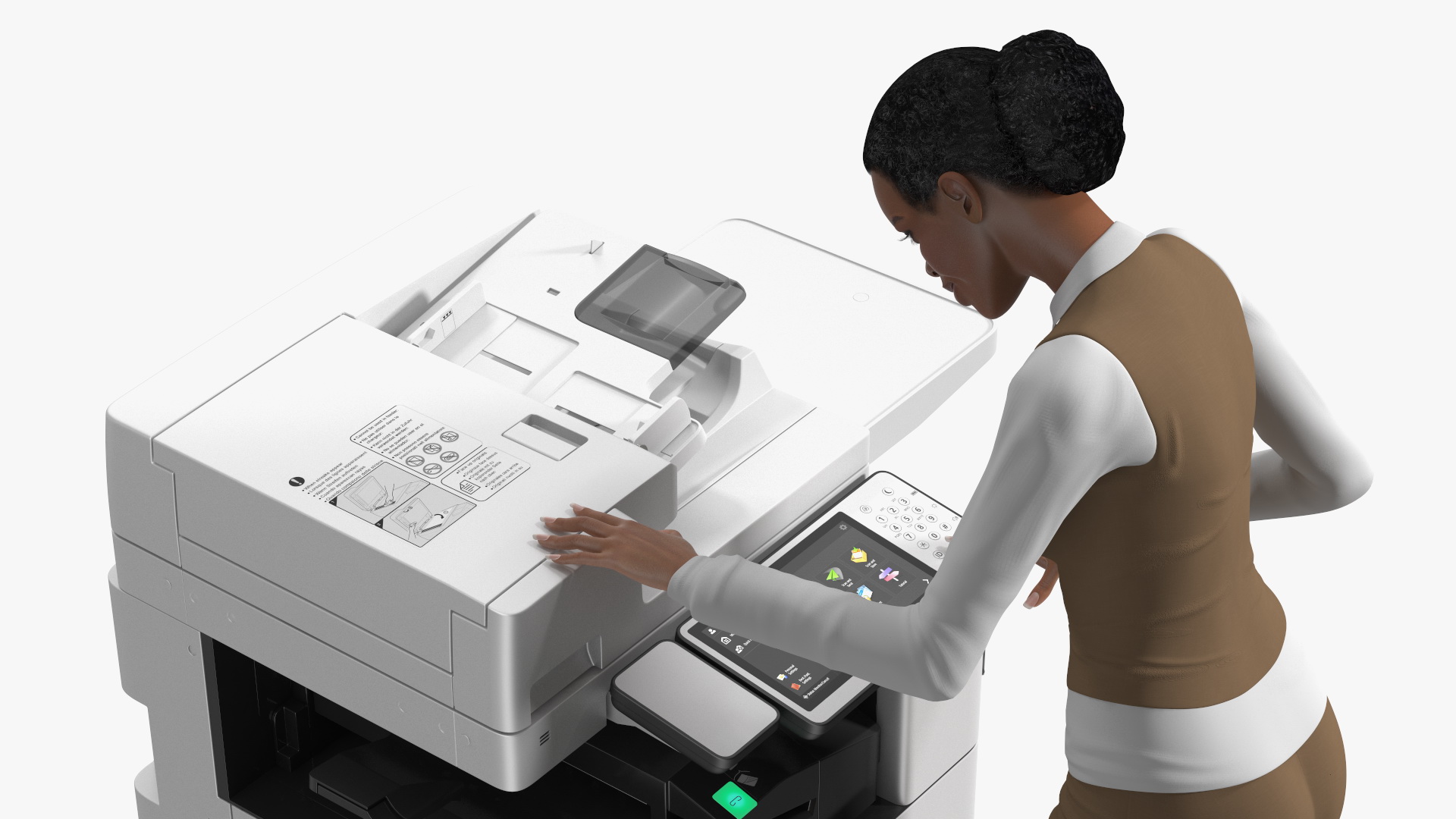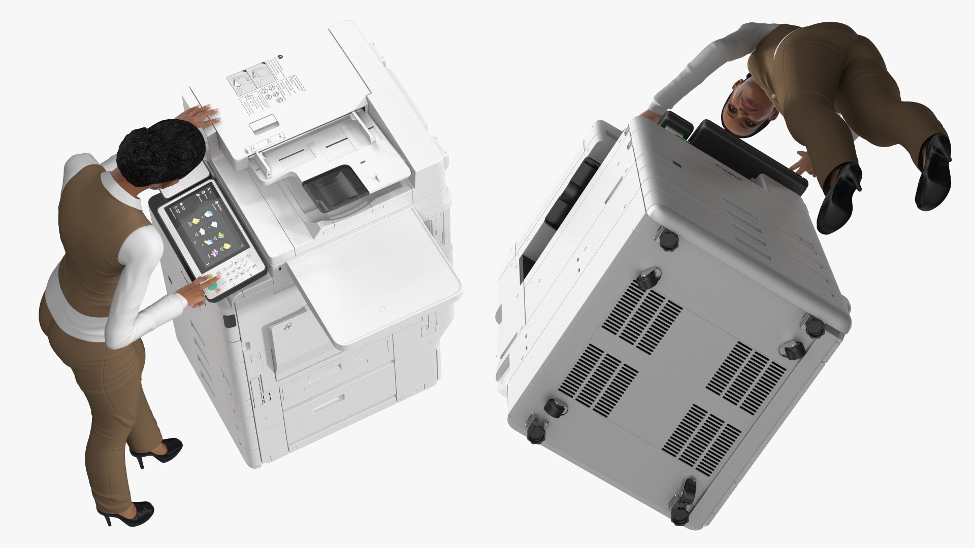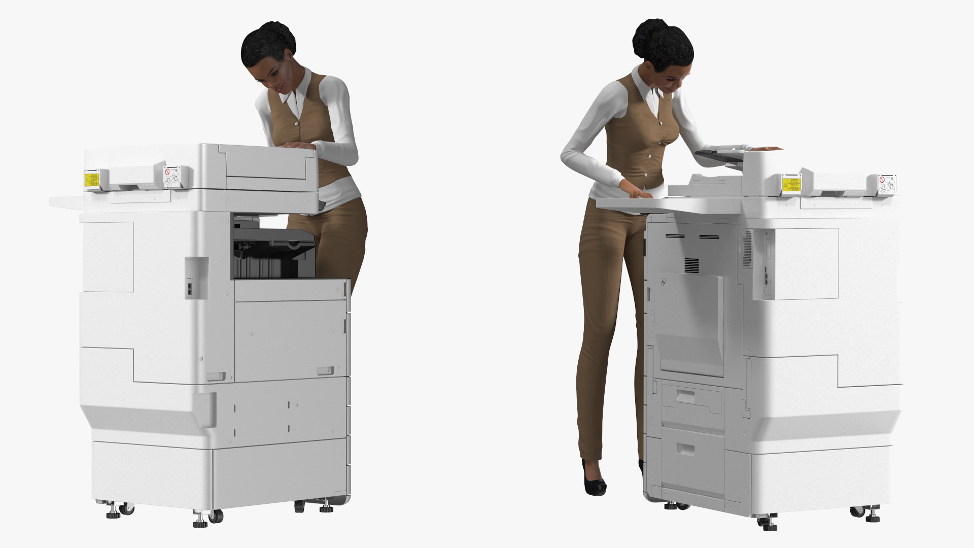 Canon Multifunction Copier with Business Style Woman Rigged is a high quality, photo real 3d model that will enhance detail and realism to any of your rendering projects. The model has a fully textured, detailed design that allows for close-up renders, and was originally modeled in 3ds Max 2020 and rendered with V-Ray. Renders have no postprocessing!