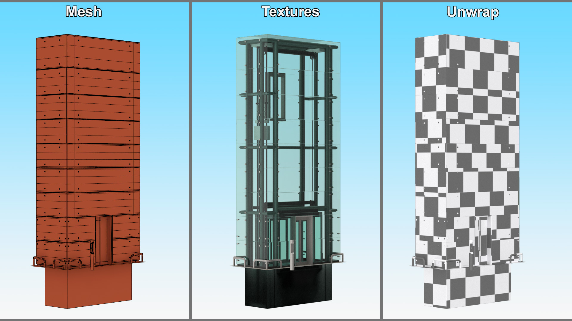 Cargo Glass Elevator Chrome is a high quality, photo real 3d model that will enhance detail and realism to any of your rendering projects. The model has a fully textured, detailed design that allows for close-up renders, and was originally modeled in 3ds Max 2020 and rendered with V-Ray. Renders have no postprocessing!