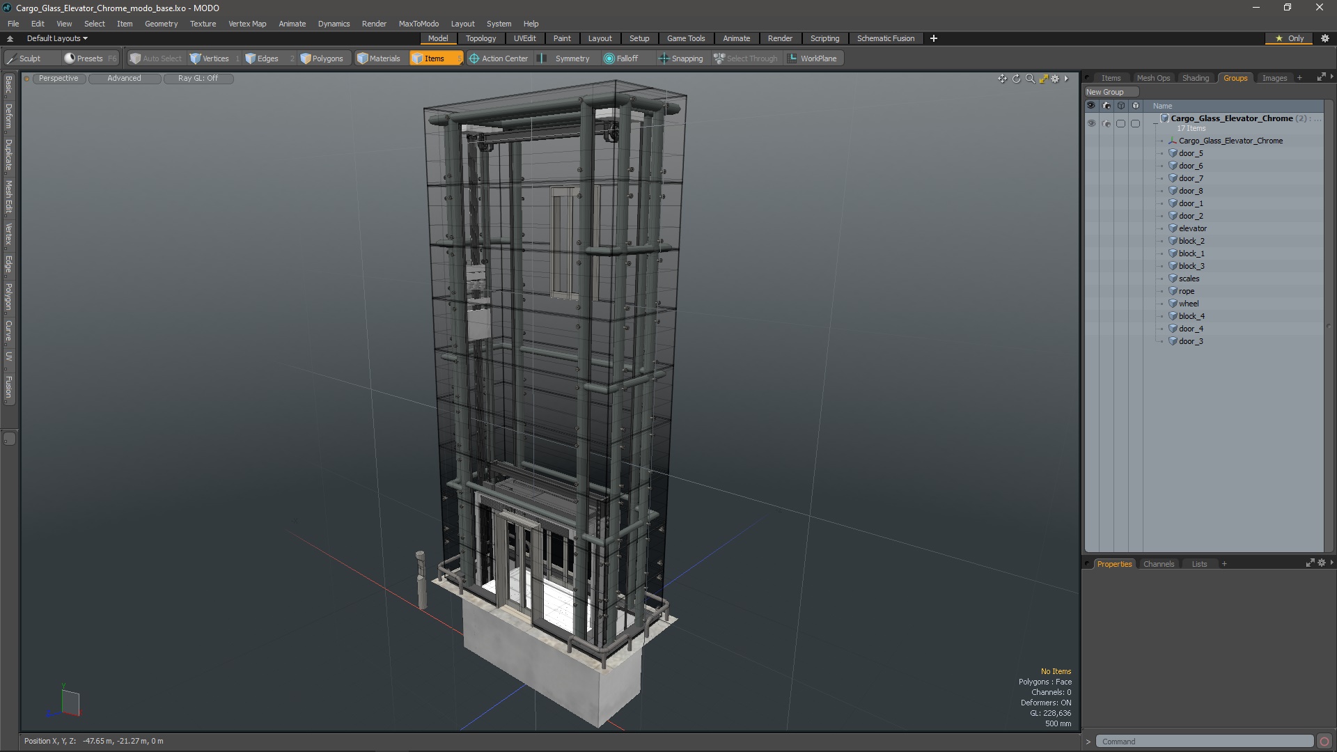 Cargo Glass Elevator Chrome is a 3d model of type of elevator specifically designed for transporting heavy goods or cargo.