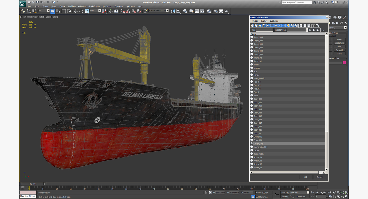 Cargo Ship is a high quality, photo real 3d model that will enhance detail and realism to any of your rendering projects. The model has a fully textured, detailed design that allows for close-up renders, and was originally modeled in 3ds Max 2020 and rendered with V-Ray. Renders have no postprocessing!
